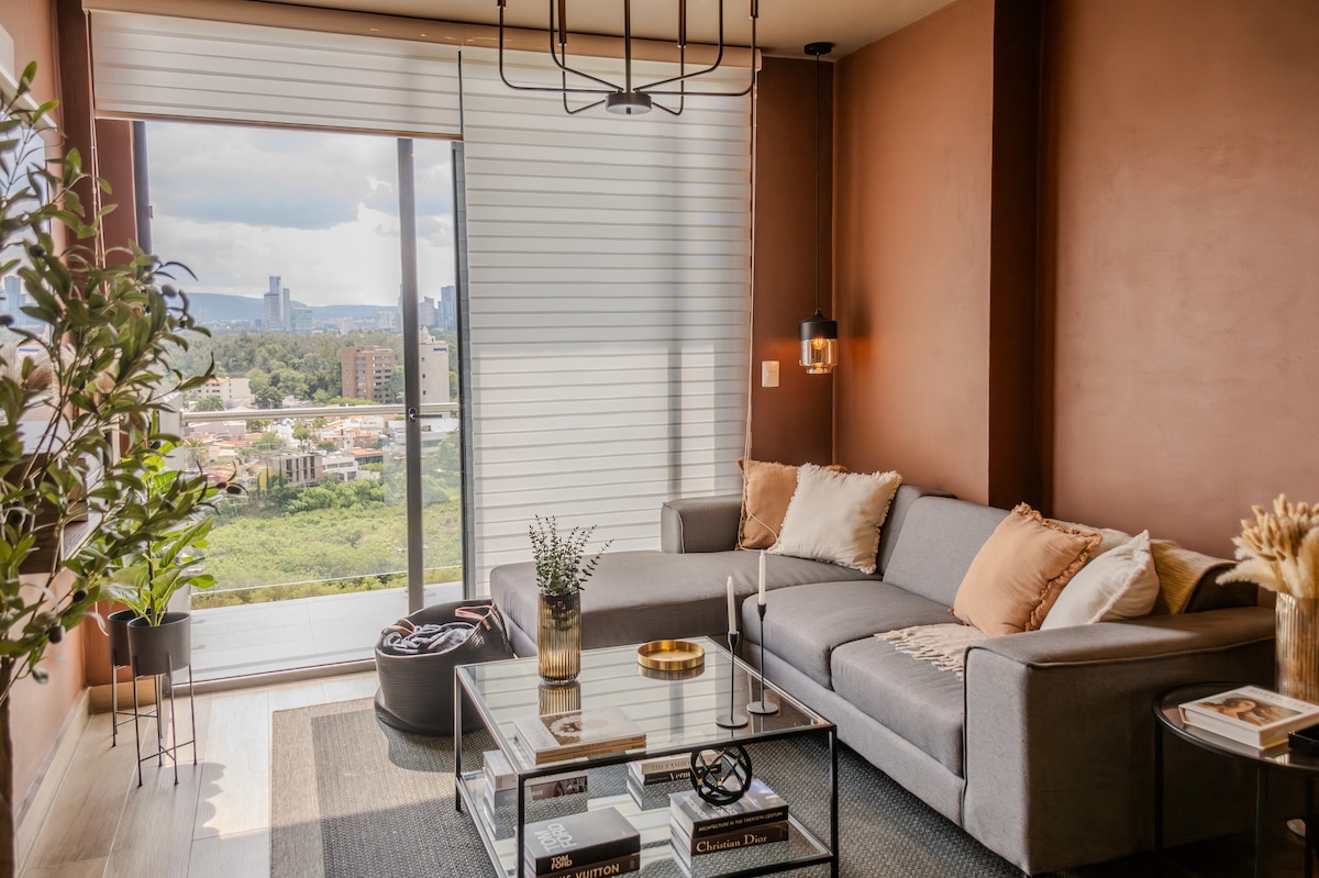 Vive una estancia cómoda y sin complicaciones en este moderno departamento en Zapopan, ideal para descanso o viajes de trabajo. Sus espacios bien iluminados, diseño contemporáneo y ambiente acogedor crean el equilibrio perfecto entre funcionalidad y confort. Ubicado en la zona financiera de Guadalajara, con seguridad 24/7 y acceso sencillo a avenidas principales, restaurantes y servicios, es el lugar ideal para relajarte y sentirte como en casa desde el primer día.
