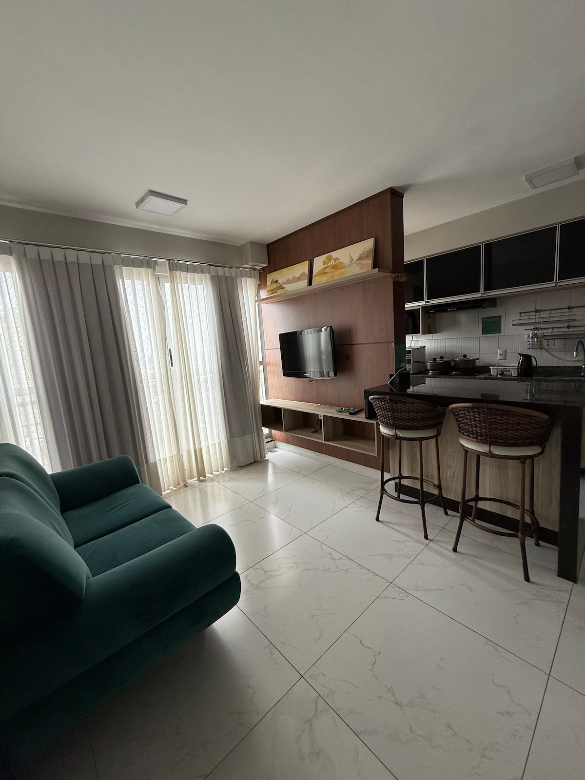 Flat arxitekturası Goiânia 'nın ən tanınmış peşəkarlarından biri tərəfindən imzalanmışdır. İdeya qonaqlama zamanı özünüzü evinizdəki kimi hiss edə bilməyinizdir. Bütün avtomatlaşdırılmış; işıqlar, pərdə, televizor, imkan və zəriflik təklif edən kondisioner, sadəcə Alexadan soruşun. Musiqiyə qulaq asın, 1,600-dən çox kanalı açıq və qapalı izləyin. Səxavətli duş ilə gözəl duş qəbul edin. Sensasiyalı gün batımı mənzərəsi və akril tavanı olan balkonda fotolar çəkin və dincəlin.