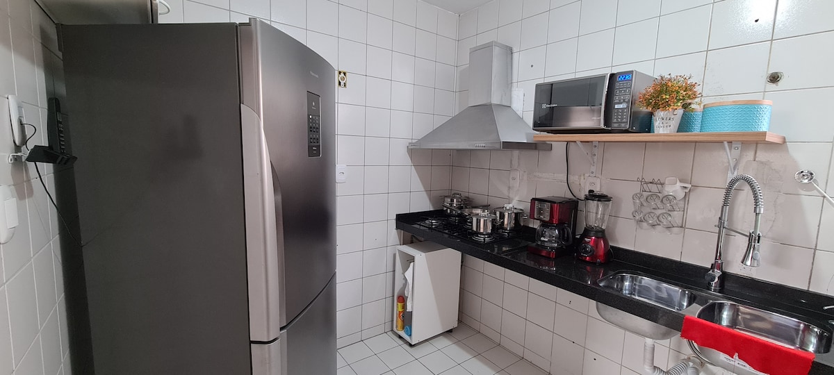 Maksimum 2 nəfərlik, 48 kv. metrlik mənzil, 500 Mb Wi-Fi, Shopping Jardins-in qarşısında, 5-ci mərtəbədə, örtülü parkinq yeri ilə. Burada amerikan mətbəxi, balkon, qonaq otağı və yemək otağı, iki hissəli və qazlı duşu olan hamam otağı, eləcə də yaxşı vəziyyətdə olan mebel və məişət texnikası var. Kondominiumda üzgüçülük hovuzu, fitnes mərkəzi və istirahət zonası var. Uşaqlar, siqaret çəkənlər və ya ev heyvanları üçün tövsiyə edilmir. İctimai yığıncaqlar qadağandır. Bron etməzdən əvvəl istifadə qaydalarını diqqətlə oxuyun.