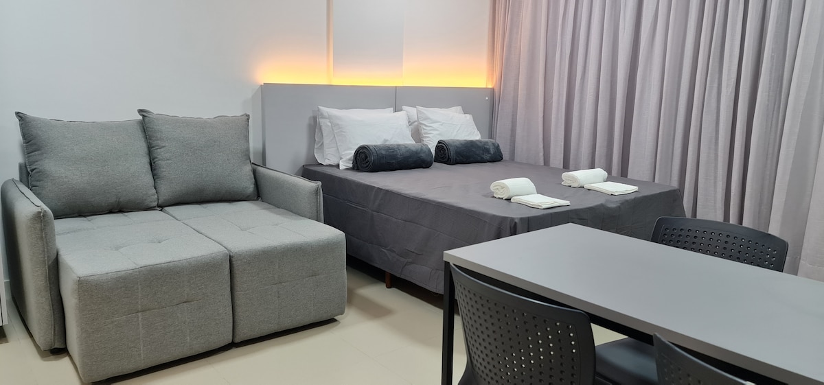 Studio novo, totalmente mobiliado e equipado, em um prédio inteligente com arquitetura única, localizado a apenas 100 metros da UFSC. Aqui você esquece as chaves: todos os acessos são por reconhecimento facial. Estrutura completa: 🚲 Bicicletário 💪 Academia 👔 Coworking/sala de reuniões 🍽 Sacada gourmet 🌿 Rooftop com gramado Viva com conforto, tecnologia e praticidade no coração de Florianópolis!