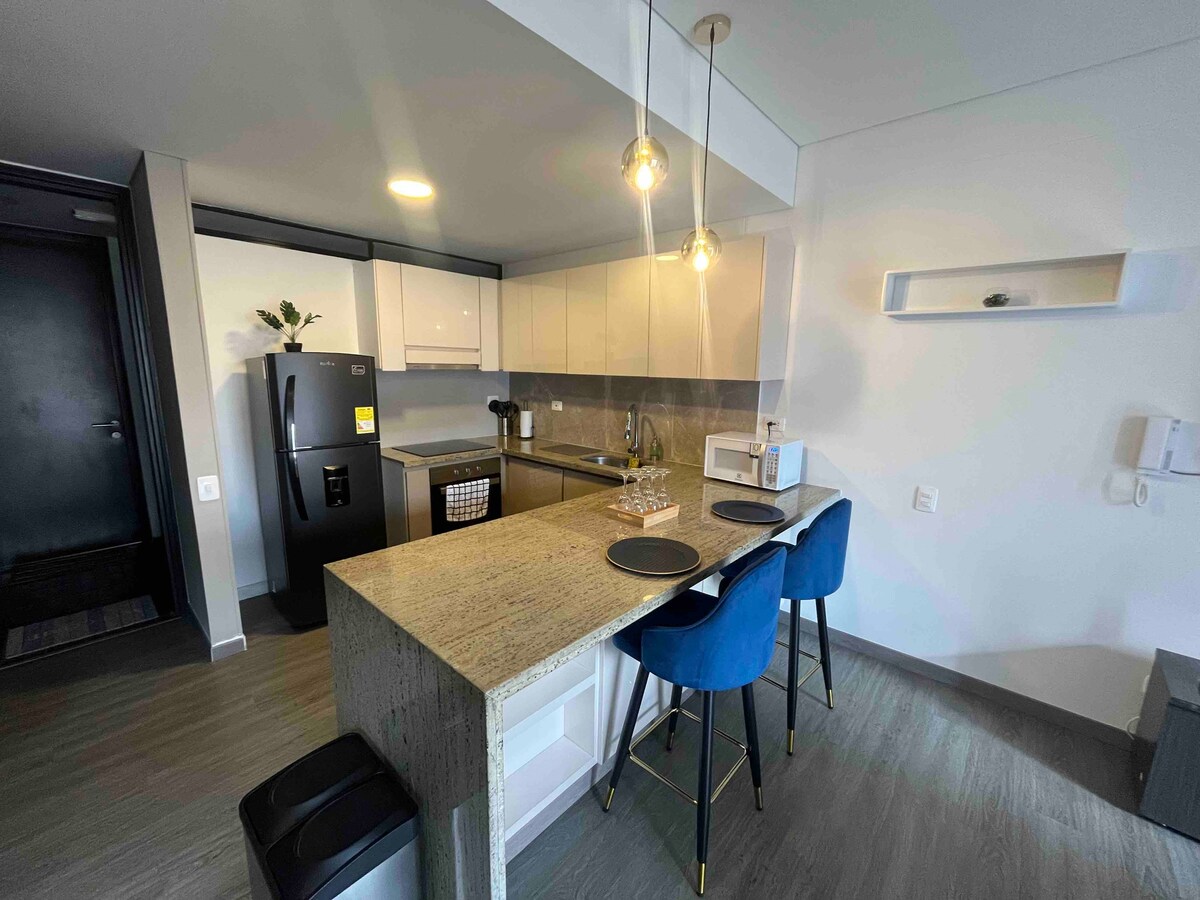 Boqotadakı mükəmməl istirahət məkanınıza ✨ xoş gəlmisiniz! Cütlüklər və ya dördə qədər qruplar üçün ideal olan gözəl mənzilimiz hər bir detalda rahatlıq və üslub təklif edir. İki yataq otağından, televizor və masası olan qonaq otağından, tam təchiz olunmuş mətbəxdən və iki müasir hamam otağından zövq alın. Üstəlik, binanın imkanlarından yararlanın: panoramik şəhər mənzərəli terras, iş yeri, camaşırxana ləvazimatları və rejiminizə əməl etmək üçün tam təchiz olunmuş idman zalı. İndi 🌇 bron edin və Boqotada unikal qonaqlama yaşayın.