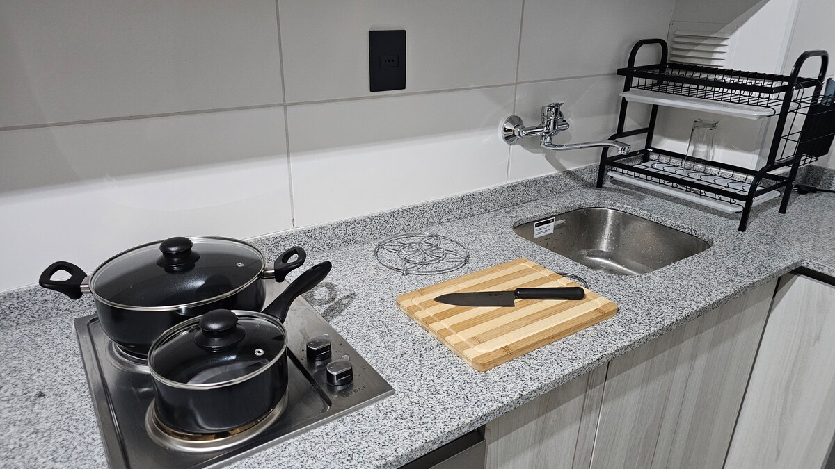 Disfruta de la comodidad de este departamento nuevo, central y muy tranquilo. Totalmente equipado, full eléctrico, con wifi para poder trabajar tranquilo y Smart TV Full HD para los momentos de Relax. Cuenta con : secador de pelo, toallas , ropa de cama, calefacción, plancha, etc. Podrás disfrutar de una linda vista panorámica al rio Bio bio y está cerca de todo, supermercado y el parque Ecuador. Completamente seguro y conserjería 24/7.