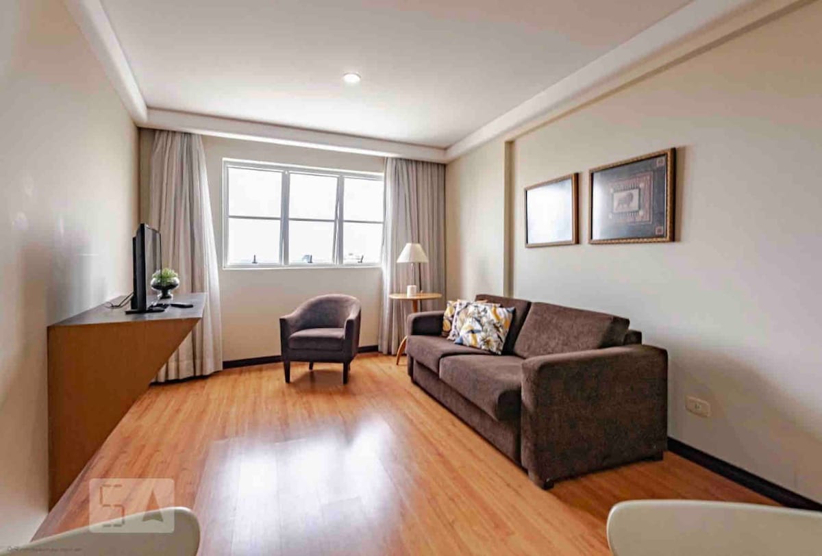 Studio moderno, novíssimo, aconchegante, perfeita localização, com uma linda vista da sacada, principalmente a noite . Wi-Fi rápido, mesa de trabalho, TV smart 55” , cama Queen. Ar condicionado (quente/frio). Máquina de lavar e secar roupa e uma linda ilha na cozinha. 50m2 de muito estilo-27ºandar, Silencioso. No Centro/Batel, próximo à comércios, bancos, shoppings, polo gastronômico e Hospital . No prédio :Piscina, academia, sala de jogos, sauna, jacuzzi, portaria 24 horas.