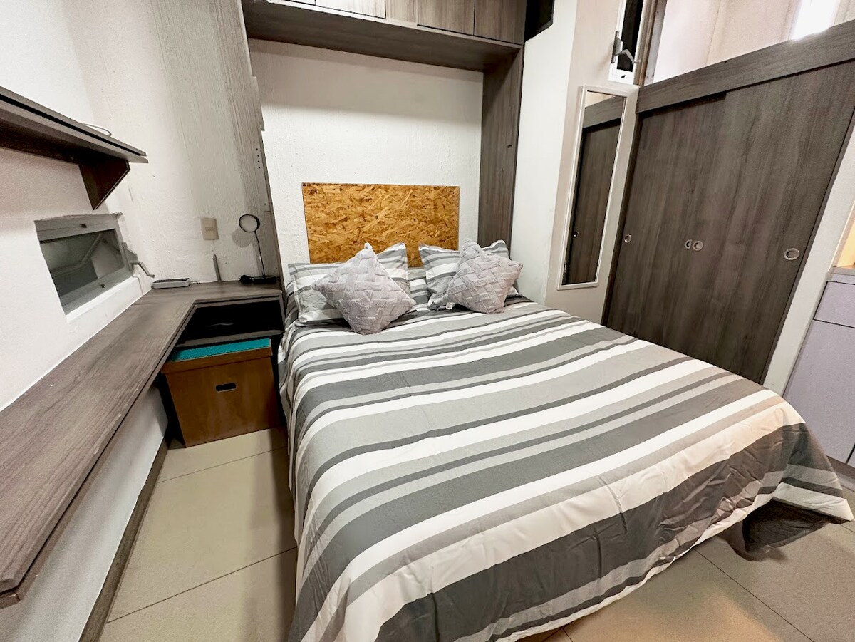 MORADA LIVING Perfecto para amigos, compañeros de trabajo o viajeros que prefieren dormir por separado, este estudio ofrece dos camas individuales, sofá cama, cocina completa, Smart TV y escritorio. Su diseño moderno lo hace práctico y cómodo para estancias cortas o largas. El edificio cuenta con áreas comunes agradables y se encuentra en una ubicación estratégica: cerca del Centro Histórico, Colonia Americana y Parque Agua Azul. Comodidad, flexibilidad y ubicación en un solo lugar.