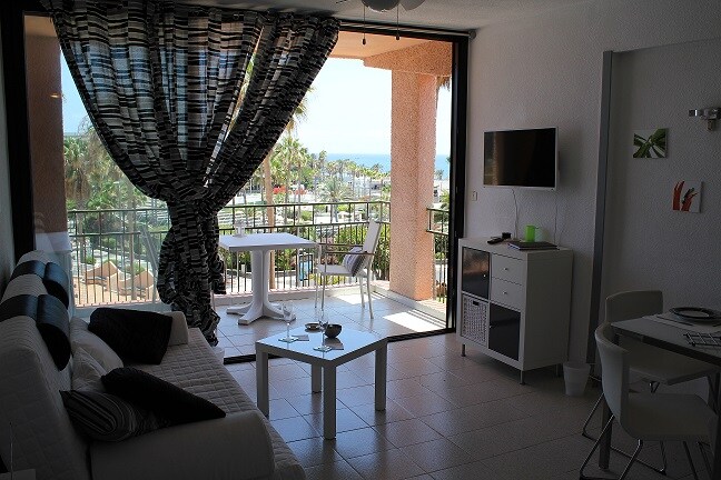 Experience comfort and sunshine in our Mint Studio with an open-plan layout, located in the popular Castle Harbour complex, Los Cristianos. ✨ Sunny terrace with pool view • 24/7 reception ★„The apartment is just like the photos, very clean, tastefully decorated.“ 🌞 Why You’ll Love Our Studio: ✅ Sunny private terrace - Sun most of the day with two sunbeds ✅ King Bed - Sleep in comfort ✅ Heated Pool - All year round ✅ Parking - Free in complex or nearby street ✅ Cook Zone - Compact kitchen
