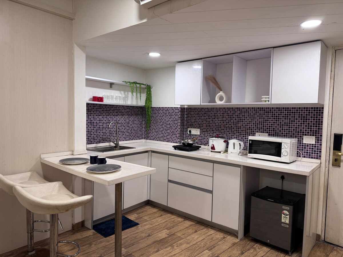 You can simply arrive with your clothes everything else is ready for you to move in and feel at home. The apartment comes with complete furnishings and essential amenities, making it perfect for both short and long stays. Guests also have access to dedicated parking space, and the society provides 24/7 security with CCTV surveillance for your safety and peace of mind. Within the society, you can enjoy additional facilities such as a gym and a party halladding convenience and leisure to your stay