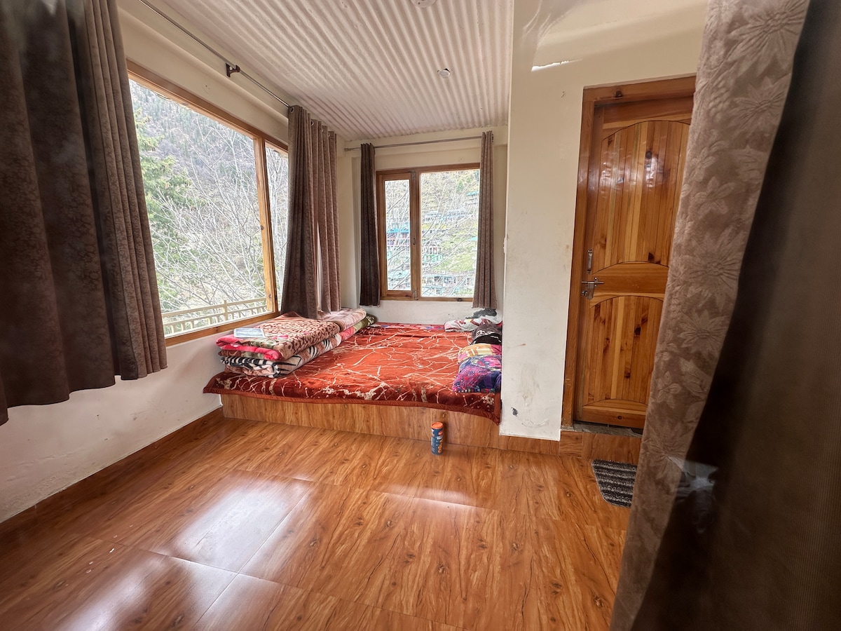 Bu ev qonaqlaması manalinin ən heyrətamiz mənzərələrində yerləşir. Hadimba məbədindən və təbiət gəzintisindən uzaqda gəzinti. Ticarət mərkəzindən 3 km məsafədə. Köhnə manali körpüsünə 2 km məsafədə. Əmlakımız 2 kottecdir. Burada hər biri ayrıca eyvanları və açıq havada gözəl oturacaqları olan 2-3 otaqdan ibarət bu mərtəbələrimiz var. Bu, birinci mərtəbədədir. Evdə aşpazımız var. Burada sifariş əsasında hazırlanmış hər şeyi əldə edə və ya ev menyumuzdan seçə bilərsiniz.