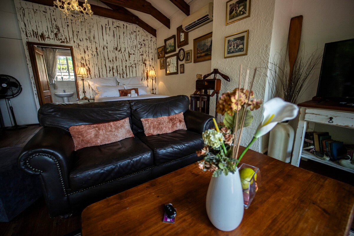 Xüsusi miras ərazisi və 1893-cü ildə təmir edilmiş ferma evi. Paltardəyişmə arenasına və at paddoklarına baxan tövlələrdə yerləşir. Qazlı geyser və soba, soyuducu, mikrodalğalı soba və s. ilə öz-özünə yemək Sakit və təhlükəsiz mühit - uzaqdan idarə olunan darvaza və elektrik hasarı. Öz bağçası, ev heyvanı yönümlü. Öz braai sahəsi - öz kömürünü gətirin. 6 nəfər qonaqlayın. Uzunmüddətli qonaqlama endirimləri tətbiq olunur. Binada Livery atları. Ərazidə atla gəzinti mövcuddur. Qonaq evinin lapa ərazisində pulsuz Wi-Fi.