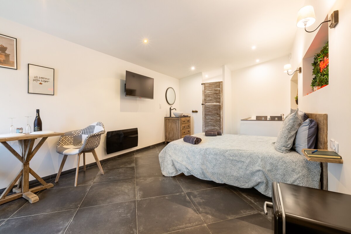 Venez profiter le temps d'une nuit ou d'un weekend, d'un spa privatif ! Vous serez séduit par ce logement de charme de plus de 40m2, entièrement neuf. Il est composé d'un espace salon avec baignoire balneo et sauna, d'une cuisine équipée, d'une chambre avec lit Queen size et écran plat (Netflix, prime vidéo), d'une salle de bain avec douche italienne et de WC séparé. Un joli espace extérieur avec terrasse vous attend.