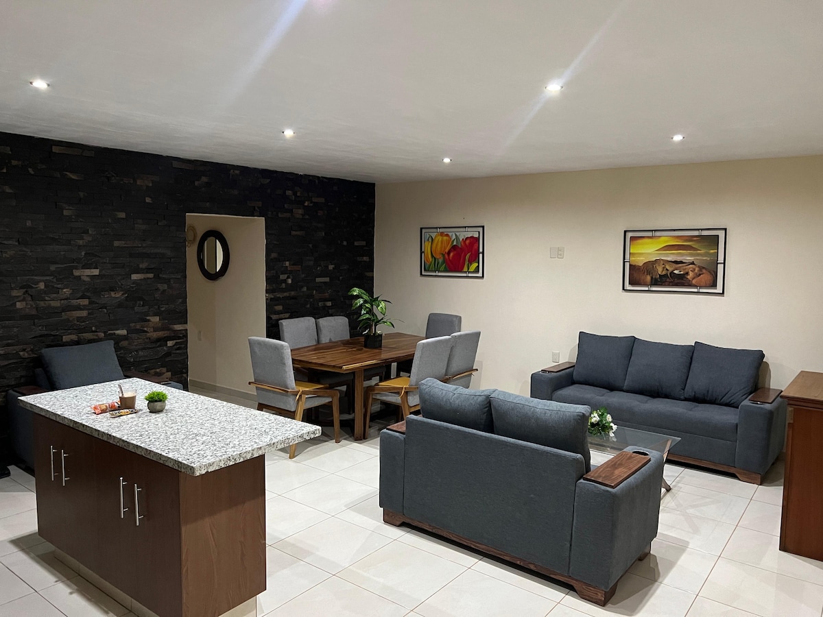 Kiçik ailələr və ya işgüzar səyahətçilər üçün mükəmməl olan rahat birinci mərtəbə mənzili. Yerli sənət əsərləri, sürətli Wi-Fi, Smart TV və günün sonunda qəhvədən zövq almaq üçün əla seçim olan ayrıca terras var. Mətbəx sadə ev yeməkləri üçün avadanlıqlarla təchiz olunub. Arena GDL, şəhər mərkəzi, Expo, Tlaquepaque və daha çoxu cəmi 20-25 dəqiqəlik məsafədədir. Təmiz, rahat və qayğı ilə ev sahibliyi edilmiş. Qvadaxarada özünüzü evinizdəki kimi hiss edin! Xoş gəlmişsiniz! Sizə ev sahibliyi etməyi səbirsizliklə gözləyirik.
