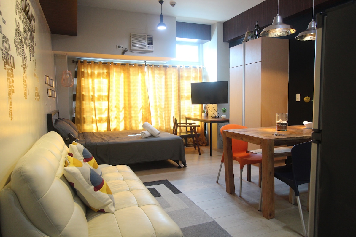 Sənaye ilhamlı studiyamız Metro Manilanın mərkəzindəki yaşayış binasının 5-ci mərtəbəsində yerləşir və sizə yaxınlıqdakı ticarət mərkəzlərinə, baş ofislərə giriş imkanı verir və qonşu şəhərlərə asanlıqla gedin. Büdcəyə uyğun 20 kv. metrlik mənzilimiz tək səyahətçilər və cütlüklər üçün mükəmməl ehtiyacınız olan tətil ilə sizi qarşılamağa hazır olan səs-küylü məhəllədə yerləşir. YAXINLIQDAKI GÖRMƏLİ YERLƏR: Doña Elena Tower 1 km məsafədə SM Megamall /Greenhills 3 km məsafədə Şou Bulvarı / Xose Rizal Universiteti 500m