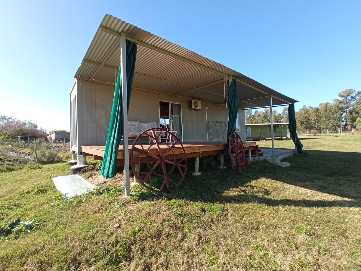 Relájate con toda la familia en este tranquilo lugar para quedarse. Casa al fondo con entrada independiente adaptada para 4 personas , cuenta con calefacción aire acondicionado y estufa a leña. Ubicada estratégicamente a una cuadra de plaza Artigas. Cerca de centro de la ciudad y camping.