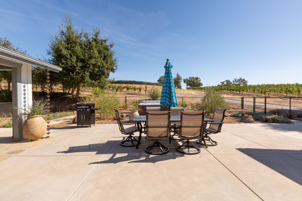 This place is magical. Seven private acres with 360 degree views are surrounded by vineyards which can be seen through most windows. On property, depending on the season, you will find apples, pears, peaches, cherries, figs, loquats, persimmons, pomegranates, pecans, chestnuts, and several grape varieties. The outdoor space includes a wrap-around covered patio, outdoor dining, multiple sitting areas, fire pits, swings, games, and outdoor cooking. It is truly one of a kind.