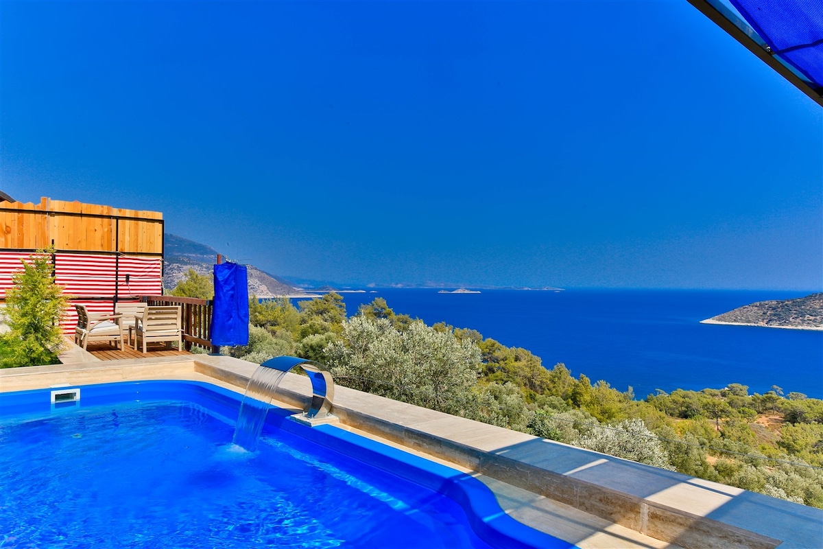 İstilikli hovuzu* və cakuzi* olan bu heyrətamiz 4 yataq/4 hamamlı villa hər küncdən nəfəs kəsici mənzərələr təklif edir və çimərlikdən cəmi 5 dəqiqəlik piyada məsafədədir. Türkiyə Memarlıq Şurasının 2024-cü ilin ən yaxşı dizayn mükafatı ilə tanınan bu oteldə böyük ölçülü hovuz, panoramik pəncərələr, dəbdəbəli mərmər hamam otaqları, sauna, idman zalı və bir neçə terras var. Kalkanda yüksək tələbat olan yüksək səviyyəli Kislada yerləşən bu yer sakit və rahat mühit təmin edir. *sorğu əsasında istilik üçün kiçik əlavə ödəniş