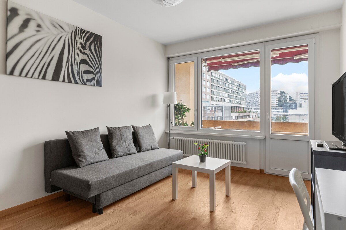 Bright and cozy studio in Geneva, 15 min from Lake Geneva & Jet d’Eau. Quiet area near Arve River & Carouge, close to cafés, restaurants, and supermarkets. Fully equipped kitchen with coffee, tea & chocolate. Perfect for couples, solo travelers, long stays or weekend getaways. Fast Wi-Fi, easy self check-in, fresh linens, and pets allowed (optional fee). Comfortable, bright, and ready for a relaxing stay.