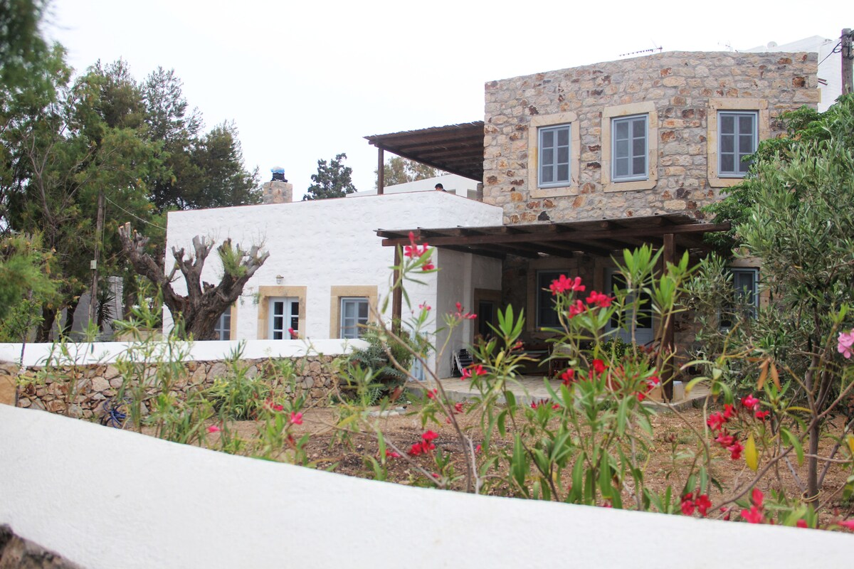 Patmosdakı çox azsaylı sahil əmlaklarından biri olan bu klassik yunan ada tətil evidir. 3 yataq otaqlı villa Qroikos Körfəzinə, yaxtalar və iki kiçik tavernaya malik alçaq çimərliyə baxır. Skalanın əsas limanından və Çoradan təxminən 4 km məsafədə. Açıq daş divarları, qaldırılmış platforma çarpayıları və kölgəli dənizkənarı verandaları ilə ev ənənəvi yunan üslubunun müasir şərhidir. Rahat və sadə, dalğaların səsini dinləmək üçün əla bir yerdir.