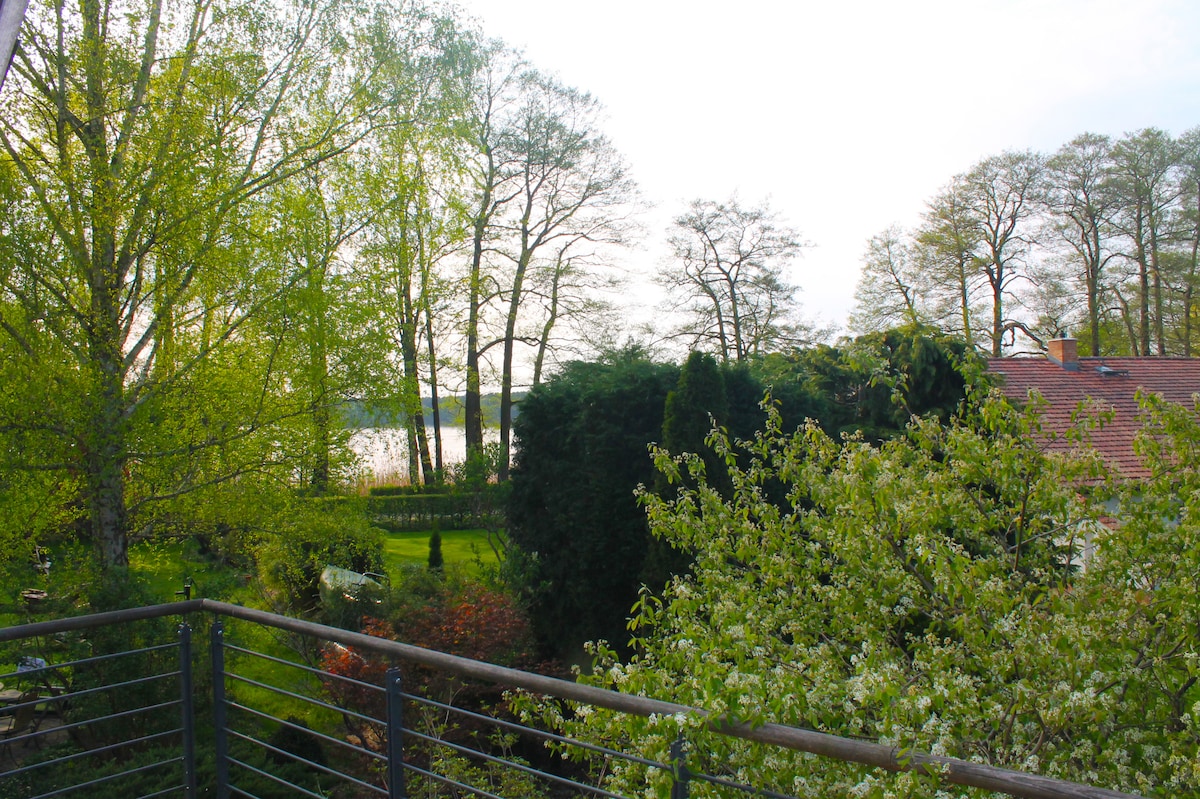 Onlar şəhərə və yaşıllığa yaxın ərazidə yaşayırlar: göldəki evin birinci mərtəbəsində. Qatar (qatar stansiyası 900 m) hər saatdan bir Berlinə və ya Spreewald-a hərəkət edir. Açıq mətbəxdən iki ayrı yataq otağına daxil olursunuz. Terras sizi səhər yeməyi qəbul etməyə və ya dincəlməyə dəvət edir. Kanada və sıralama qayığı götürülə bilər. Qayıq turlarınız birbaşa əmlakda başlayır.