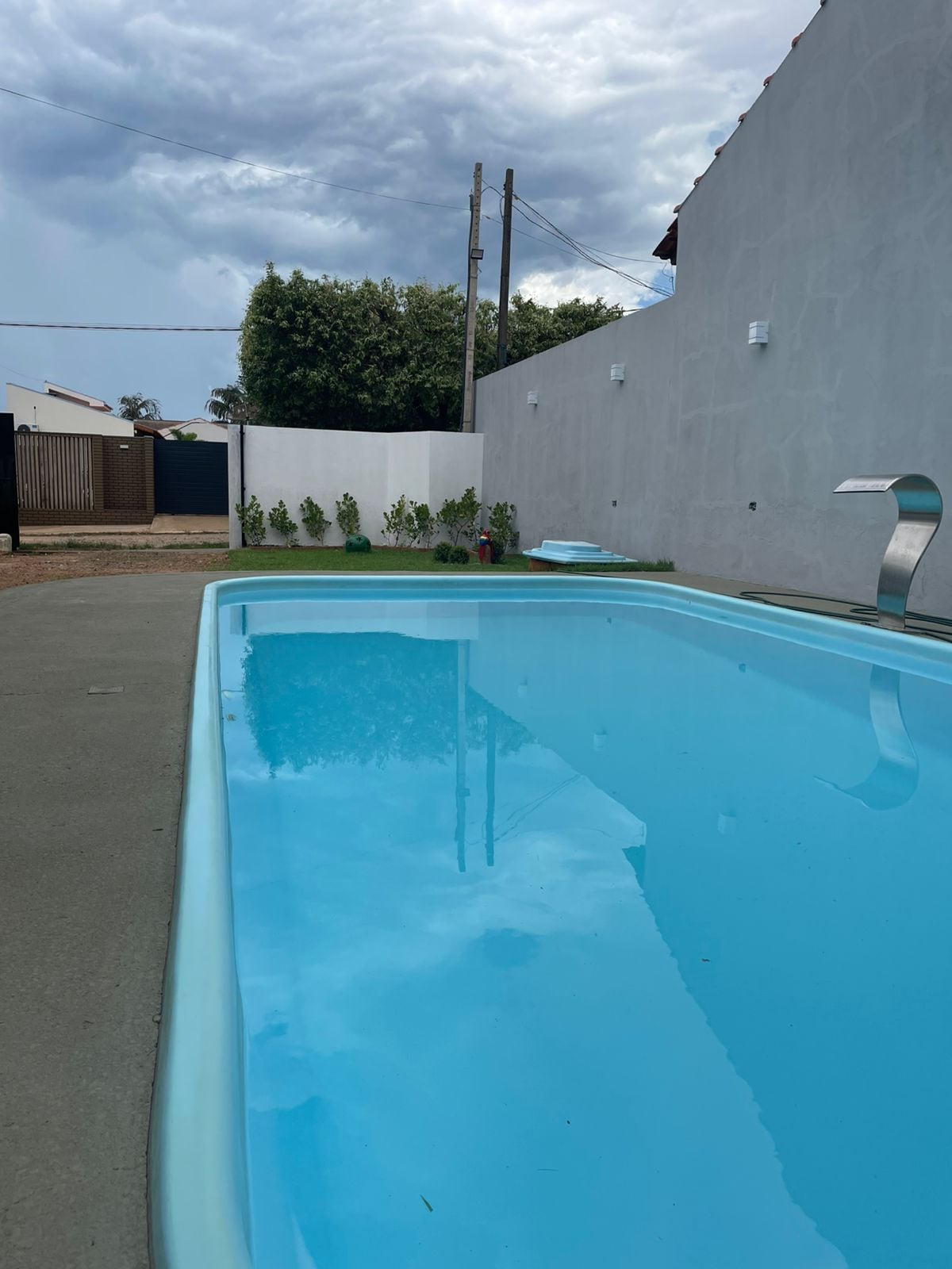 1 Suíte com ar condicionado. 1 quarto com ar condicionado, cama casal e beliche.. 1 quarto com ventilador e 2 beliches, mais vários colchões (reserva). Sala ampla e arejada com sofá, TV e Internet (Wi-Fi). Cozinha completa com todos utensílios, fogão, gás, geladeira. Jardim com area verde e gramado. Área de lazer completa com churrasqueira, fogão a lenha, pia, grelha, tábua de carne e espetos. Piscina com ducha, cascata. Banheiro area externa.