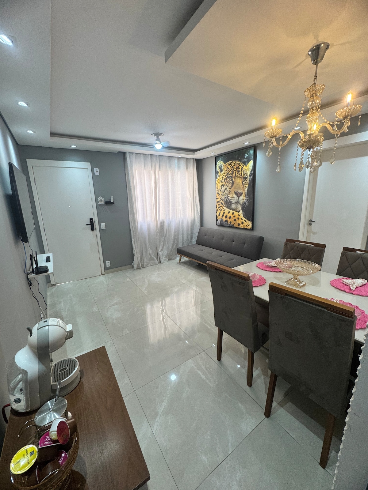 Espaço novinho COM AR CONDICIONADO, 12min da Replan, 5min do centro e perto de tudo, acomodação completa com cozinha, banheiro e lavanderia com secadora. Oferece 01 cama de casal + 01 sofá cama espaçoso. Estacionamento rotativo, as vezes é necessário estacionar na rua.