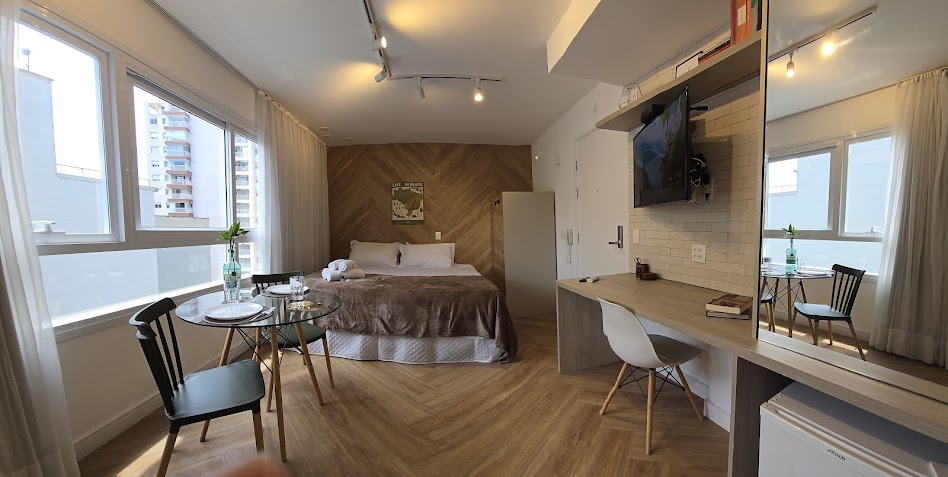Studiya mərkəzdəki ən yüksək binanın 31-ci mərtəbəsində yerləşir, müasir və qonaqpərvər dizayna, eləcə də şəhərin heyranedici mənzərəsinə malikdir. Pəncərədən Anhangabaú Vadisinə, Tarixi Mərkəzə, Av antenalarına heyran ola bilərsiniz. Paulista: San-Pauluda ən gözəl mənzərələrdən biri. Bura SampaSky-nin yerləşdiyi binadır və mərkəzin əsas görməli yerlərinə getmək mümkündür. Burada kondisioner, tətbiqləri olan 55'' televizor, əsas ləvazimatlarla təchiz edilmiş mətbəx, aşpaz (1 ağız), mikrodalğalı soba və minibar var.