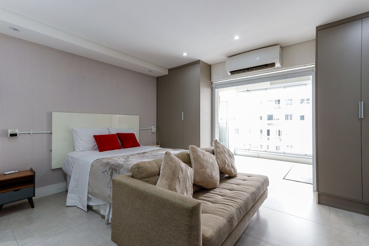 Curta uma experiência elegante neste lugar bem-localizado. Tem todo conforto e segurança. Cozinha completa para suas refeições rápidas. Poder se hospedar em um aconchegante e charmoso studio com terraço e vista. Super bem localizado, Wi-fi de alta velocidade, TV 32”e ar-condicionado. Piscina borda infinita na cobertura e academia à disposição. 350m do metrô e próximo a alternativas culturais, gastronômicas, noturnas, supermercado, farmácia e lojas.