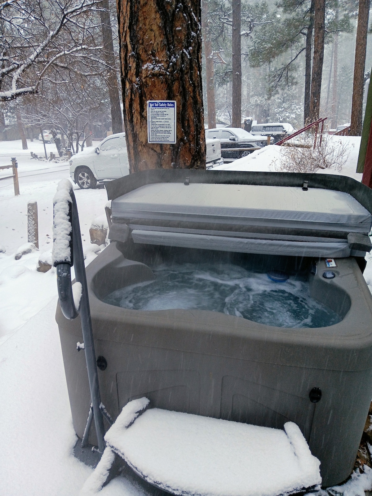 Nestled under gorgeous 100 ' tall ponderosa pines, you'll find this cozy, 76 year old, 424 sq ft , little gem of a cabin. Whether you want to take in the fresh mountain air while grilling and relaxing in the hot tub or snuggle up in front of the electric fireplace, this comfy two- bedroom, one bath cabin has you covered. The super cute stocked kitchen goes beyond function with its modern, yet retro style. Though tucked into the historic Upper Canyon, it's a 3- minute drive to fun filled midtown.