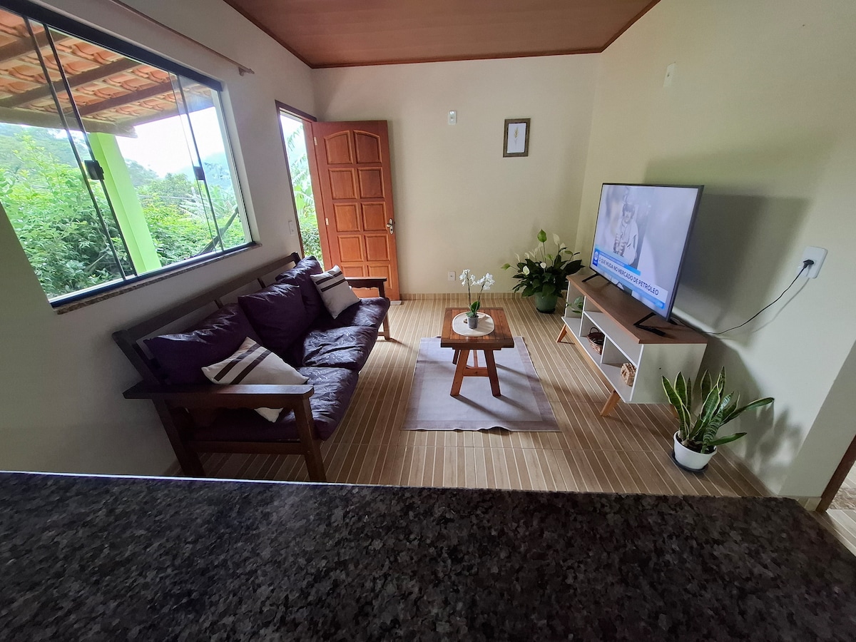 local muito tranquilo! ideal para renovar as energias! fugir da correia do dia a dia,com muita paz e tranquilidade! ar totalmente puro céu ao cai da noite totalmente encantador. a 700 metros do Encontro dos rios Lumiar, com vista para as montanhas.dar pra ouvir o som do rio.ainda tem vista pra estrada toca da onça! chalé totalmente equipado com wi-fi ar condicionado todos os utensílios de cozinha chuveiro a gás microondas liquidificador sanduicheira TV smart com Netflix Sky.