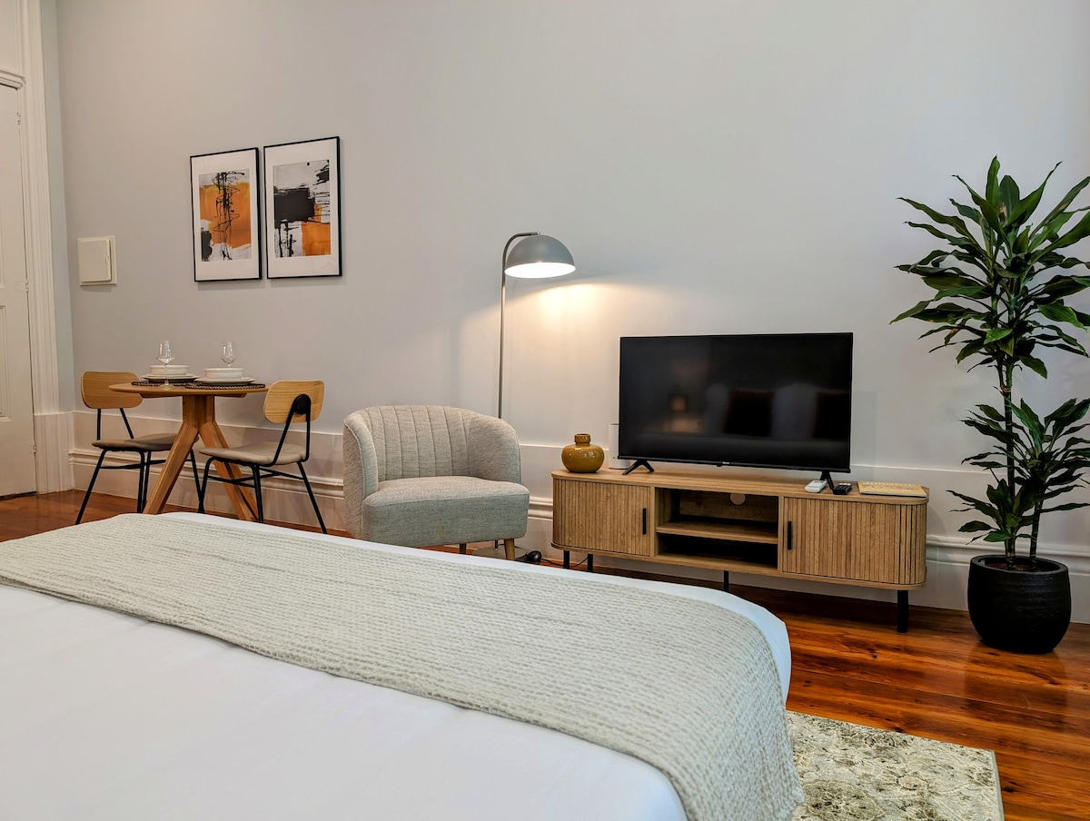 Portoda sevimli günəşli studiya. Yataq otağı/qonaq otağı / mətbəx və ayrıca hamam otağı olan studiyalara bölünmüş böyük bir mənzilin məkanını optimallaşdırmaq üçün innovativ konsepsiya. Portonun mərkəzində, mərkəzi Trindade stansiyasının qarşısında əla yer. Oradan bütün şəhər mərkəzi Portonu ziyarət edə bilərsiniz; Şəhərin ən gerbli yerləri, Ribeira, Torre dos Clerigos, Livraria Lello, S. Bento Stansiyası, Rua das Galerias de Parisdəki gecə klubları və bir çox digər şeylər