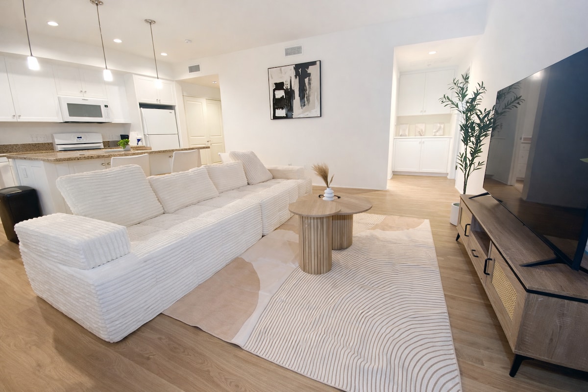 Rafter ceilings, coastal farmhouse furniture, and a white-washed, sandy color palette bring the tropical vibes inside. Families can take toys to the beach to play by the shore. Located on the second floor and includes one car garage parking spot. The bungalow is a block away from Corona Del Mar Beach in the "Flower Streets," surrounded by multimillion dollar homes. CDM Village—known for quaint shops, café’s, bakeries, and restaurants—is just around the corner. Disneyland is 20 miles away.