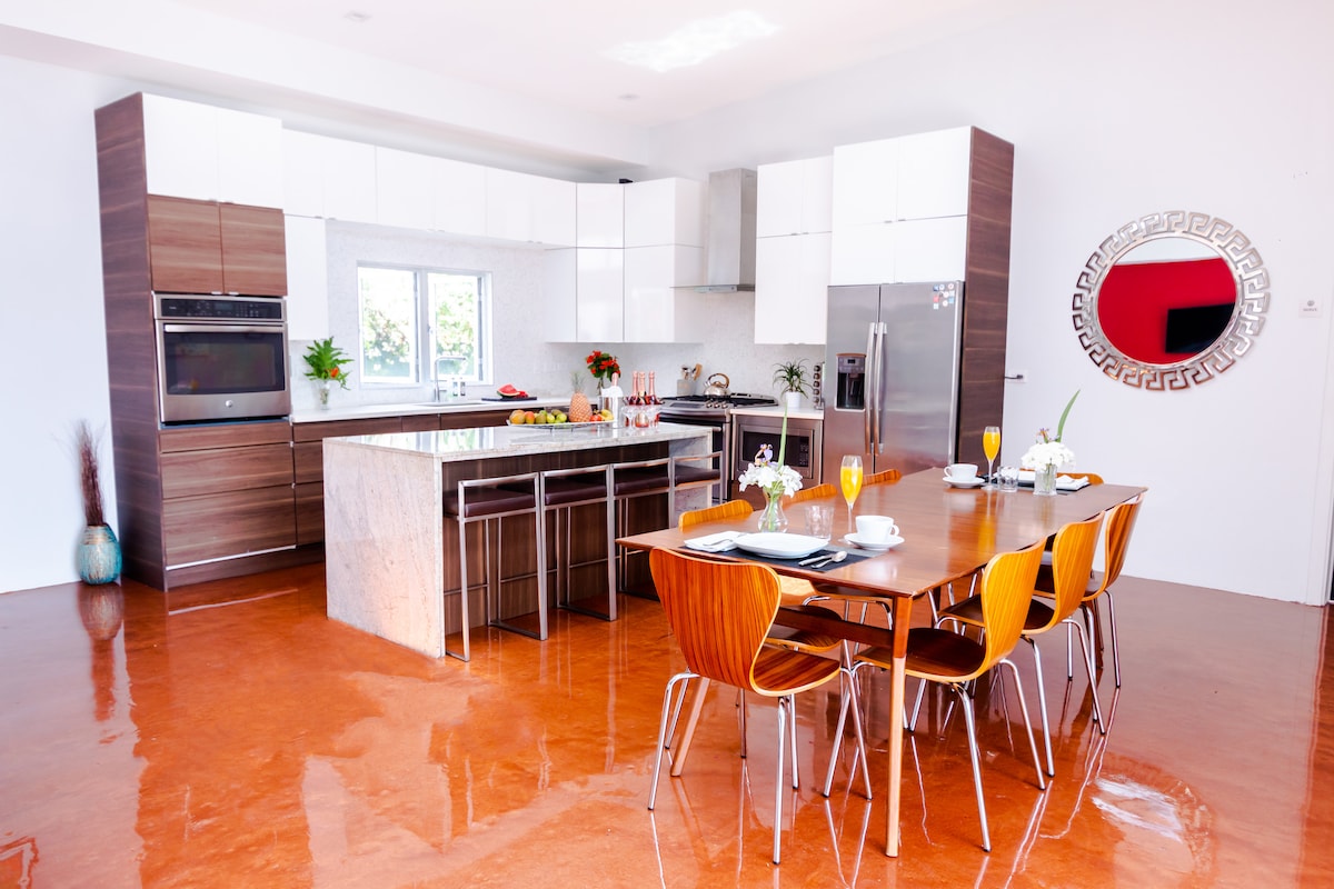 Zen ab-havası və evdən uzaqda işləmək üçün ilhamverici yeri olan geniş, müasir, gözəl şəkildə bəzədilmiş ev. "airbnb" -də iki rahat yataq otağı, rahat iş sahəsi və mətbəx adanı ilə tam təchiz edilmiş mətbəx, eləcə də ikimərtəbəli soyuducu, ensiz hamam otaqları və taxta döşəmələr var. Sonsuzluq hovuzunda uzanın və parlaq mavi rəngli taner kimi seyr edin və başınızın üstündə bir ağacdan digərinə doğru uçur. Ağac ev və füsunkar, dəbli Karib hovuzkənarı villanın mükəmməl qarışığı.