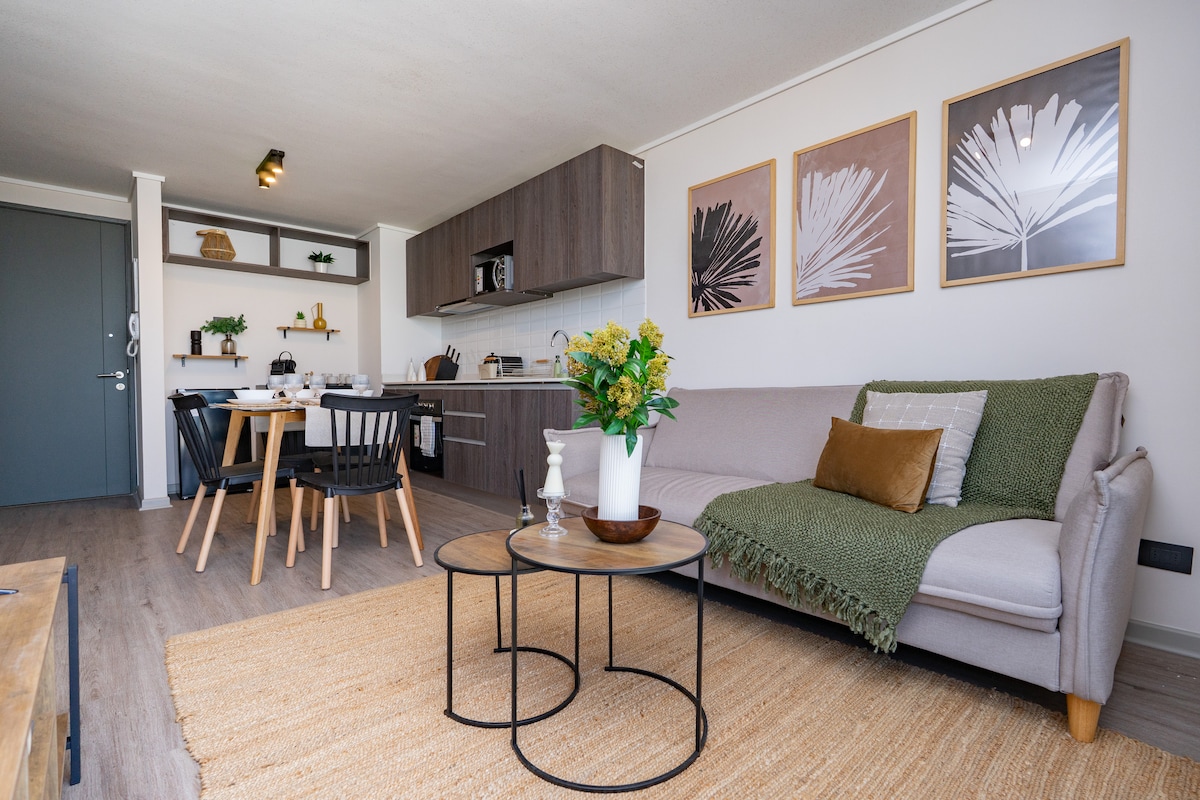 Disfruta de un espacio moderno y lleno de detalles en La Florida. Este departamento 1D/1B está frente al Mall Plaza Vespucio y pasos del metro, ideal para descansar, trabajar o escaparte un fin de semana. Equipado con todo lo que necesitas: cocina completa, WiFi rápido, terraza, TV y estacionamiento privado. Perfecto para parejas o viajeros exigentes que buscan comodidad, estilo y buena ubicación.