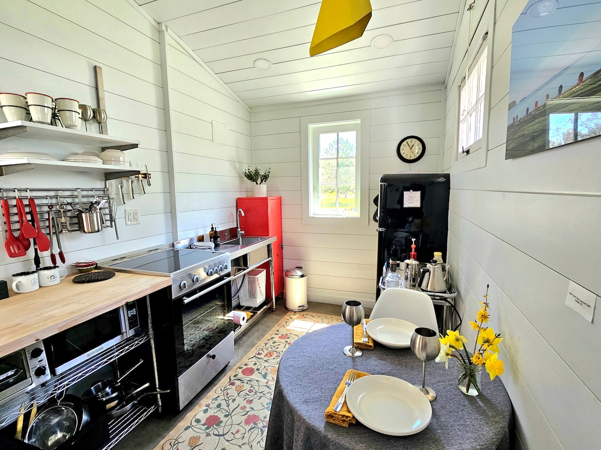 Grandview Farm Cottage is a circa 1920s newly renovated, 420 sq. ft. private guesthouse on the grounds of a 2.5 acre Door County property built in the late 1800s. Modern, industrial and repurposed style meets vintage farmhouse charm. Central location allows for quick drive or even a bike ride to either coast of the peninsula. Enjoy nature, wildlife, your own organically grown gardens, and dark starry night skies, while being only 3 miles to nightlife and shopping and beaches and parks.