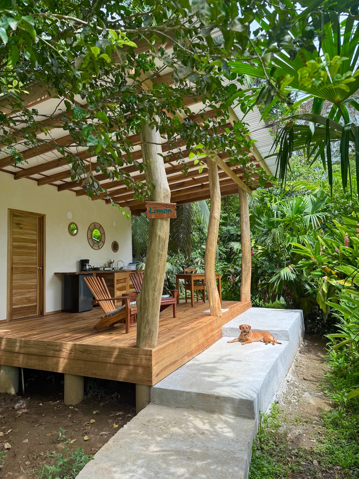 Do you want to treat yourself? Come stay at our luxury bungalow with private plunge pool! This bungalow is located in eco-lodge La Rana de Cahuita. Featuring seven cabinas and another larger inviting and refreshing (shared) outdoor pool, our accommodation is seamlessly integrated into a lush tropical garden. Think coconut trees and the sound of howler monkeys and toucans. Respect for nature and tranquillity is a must!