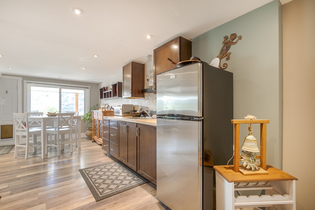 Skaha gölünə və dağlara baxır. İstədiyiniz bütün komfortları təmin edir. Çimərliklər, qolf meydançaları, şərab zavodları, pivə zavodları və Fermer Bazarından, eləcə də velosiped/piyada gəzinti yollarından və Apex Xizək Kurortundan qısa sürmə məsafəsindədir. Həyat yoldaşım və mən yuxarı səviyyəni tuturuq, buna görə də bacardığımız hər cür yardım etməkdən məmnun olardıq. Vaxtaşırı mini karikaturamızı görə/eşidə bilərsiniz. Məxfiliyinizə hörmət edərkən səmimi, fərdiləşdirilmiş xidmət təmin etməyi səbirsizliklə gözləyirik.
