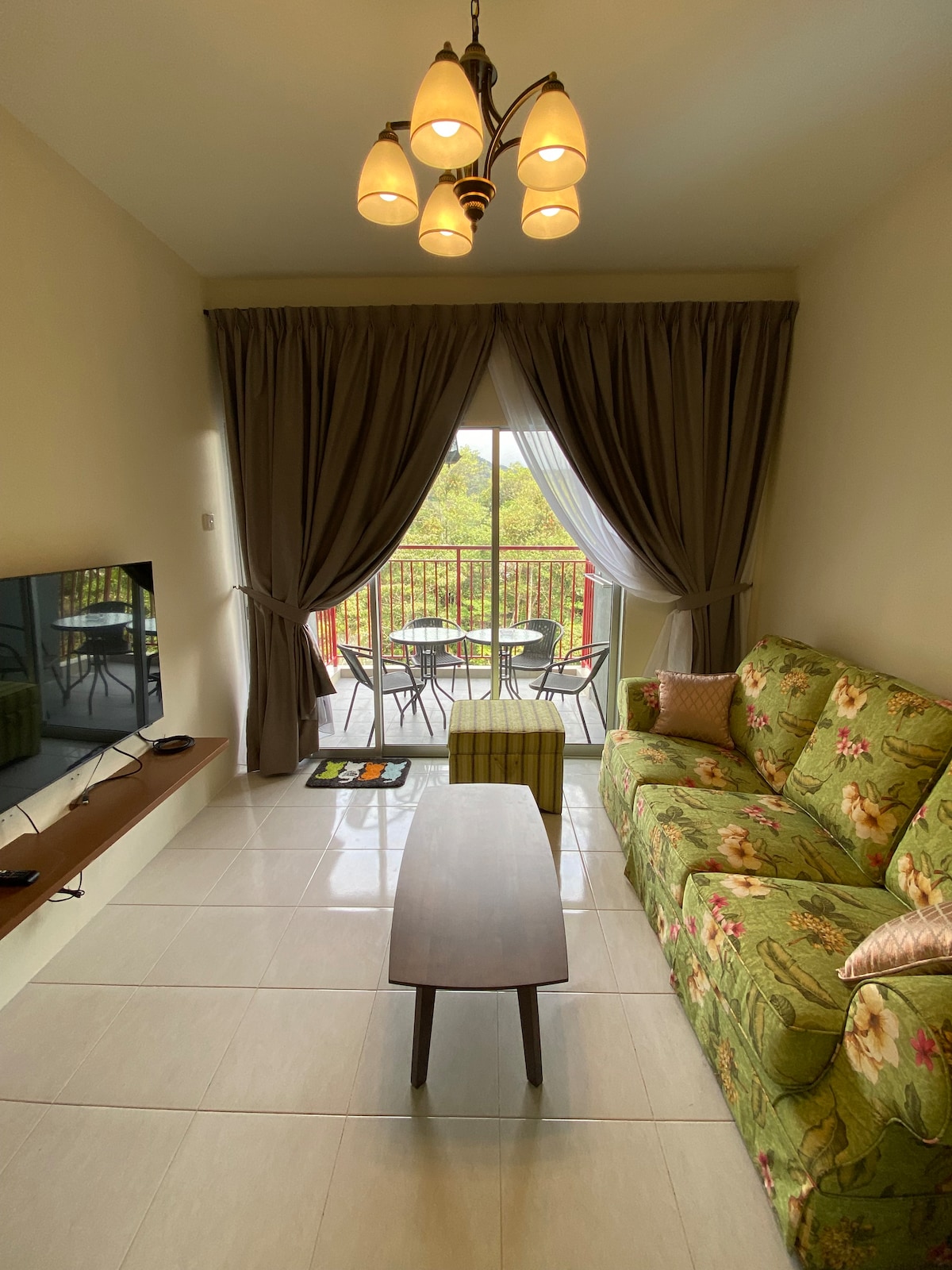 Entire 2 bedroom, 2 bathroom apartment with living, dining areas and a balcony. For families of up to 7 persons (maximum). Good location, Tanah Rata and Brinchang towns are less than 10 mins away by car. NO PUBLIC TRANSPORT AVAILABLE and not suitable if not driving. Pasar Malam, minimarts, convenience stores, restaurant down stairs. Free 100mbps WIFI and android TV with YouTube. Cooking not allowed (including steamboat). Microwave available to reheat precooked food and cutlery to dine indoors.