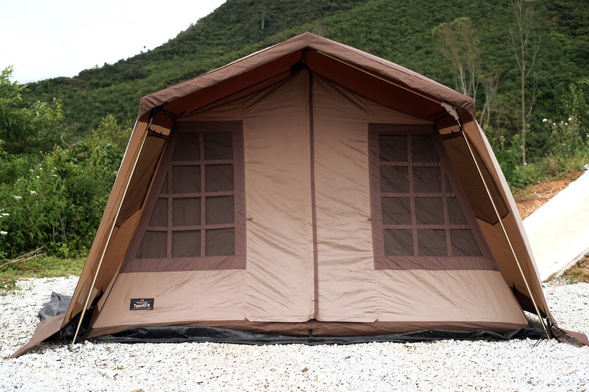Ogawa Type 52R Tent (1 double bed for 2 pax, 1 single bed for 1 pax) Cooling weather and surrounded by tea garden and mountain, perfect place to enjoy nature. We provide shower shared toilets with water heaters attached to each toilet, hair dryer in washroom, refrigerator, freezer, sink, reading corner, common area, guarded and gated, parking lot and some board games.