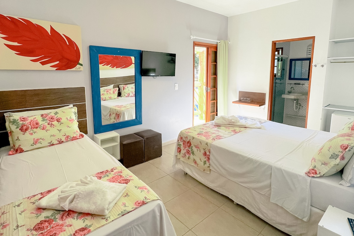 At the southern end of the island, Velinn Pousada 8 Ilhas is in the best spot to enjoy a beautiful sunset. At the pool, at breakfast and in all rooms you will have a stunning sea view! A perfect landscape that brings peace and tranquility. The Luxury Room is equipped with a Queen Size bed, 32″ Smart TV, Air Conditioning, minibar, private bathroom, amenities and bed and bath linen. Accommodates 3 people and includes breakfast. Children under 12 will not be accepted.