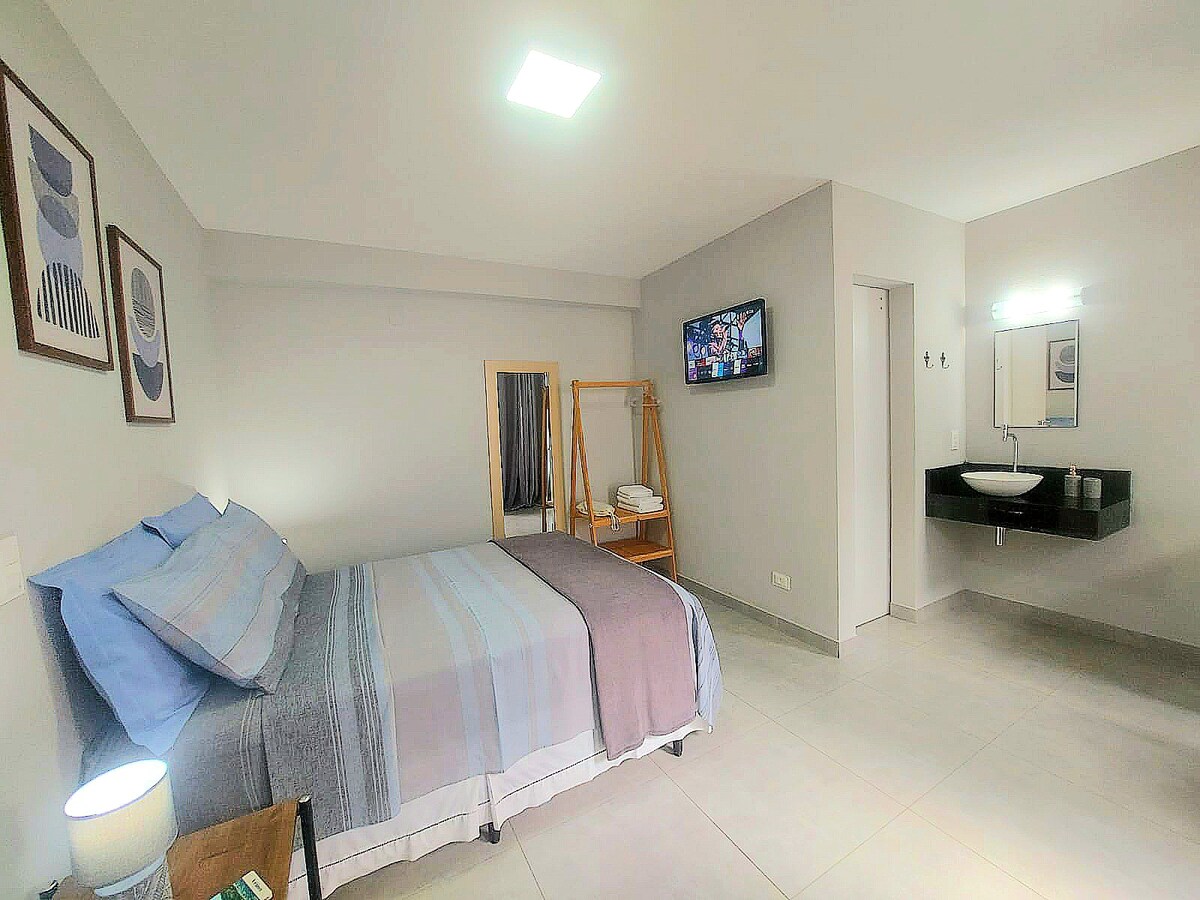 Çox yaxşı yerdə, müstəqil girişi olan, ayrıca hamam otağı və balkonu olan, lhabelanın cənubundakı 3 ən yaxşı çimərliyin yaxınlığında əla yerdə yerləşən ev süitası: P. Qrande - P. Julião - P.Feiticeira, piyada əlçatan. Çörək zavodu, marketlər və çimərlik restoranlarının yaxınlığında. Süita , balkon, qamak, ağcaqanad toru , ventilyator, minibar, masa ,televizor, wi fi və kondisioner. King Suite: 1 cütlük və ya 2 təkli üçün Maksimum 2 nəfər üçün daha bir süitam var.Cadugər Suites-Ilhabela-Suite Queen