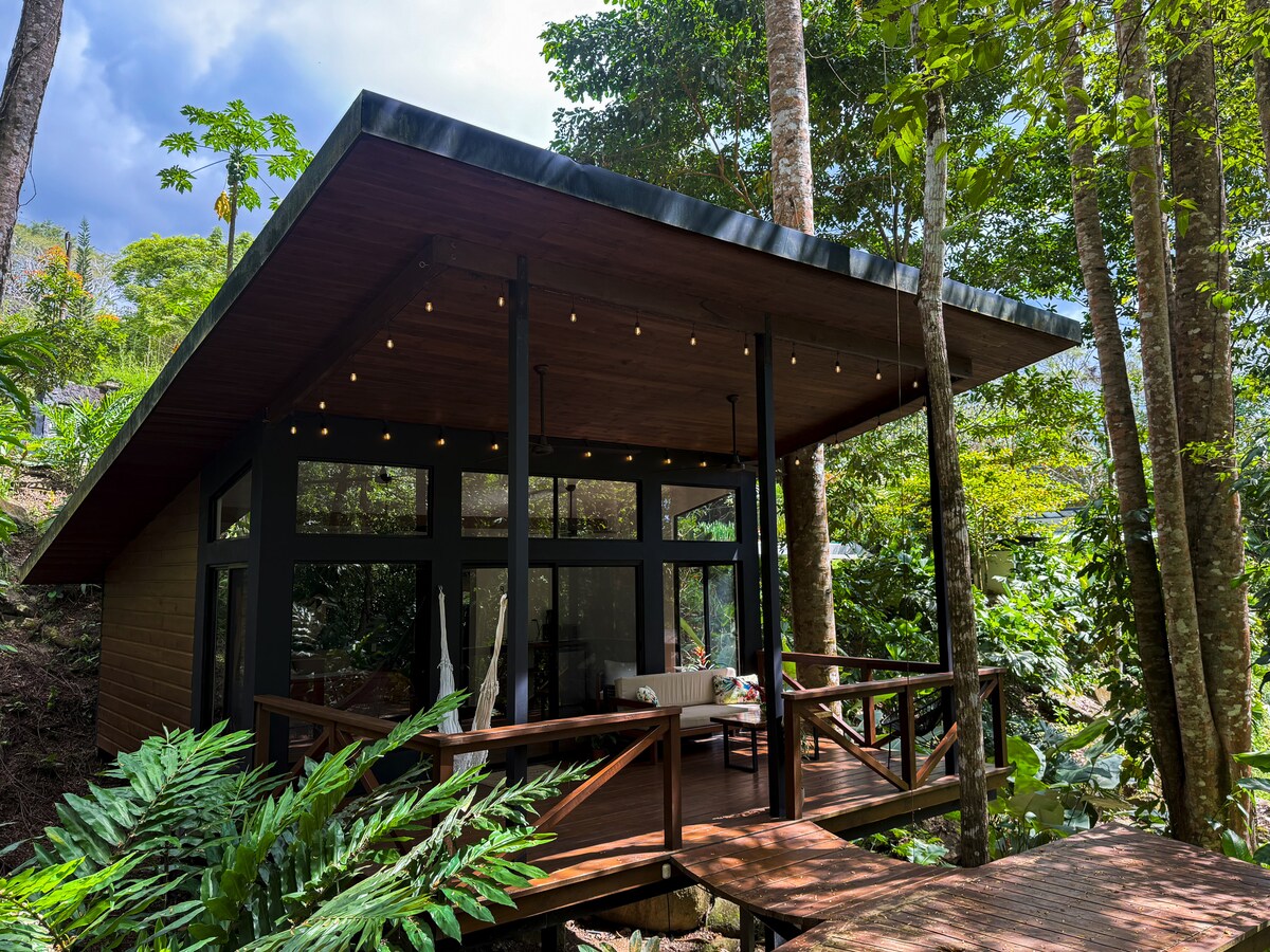60 hektarlıq tənha tropik meşədə 5 şəlalə və xüsusi yürüyüş yolları olan ucsuz-bucaqsız dağ cəngəlliyi evi. Dağ yamacımızdakı tukanlar və vəhşi təbiət qalereyası. 5BR əsas ev (qiymət daxil 9 qonaq) 3 BR bağçadakı hər biri 49 $/n əlavə ödənişlə əlçatandır. Tam personal/ gündəlik səhər yeməyi daxildir. Maksimum tutum 20 qonaq. Gündəlik təmizlik işləri və konsyerj daxildir. Biz SJO hava limanından 3,5 saat, Manuel Antonio parkından isə 1 saat məsafədəyik. Dominikdə okeandan 30 dəq məsafədəyik.