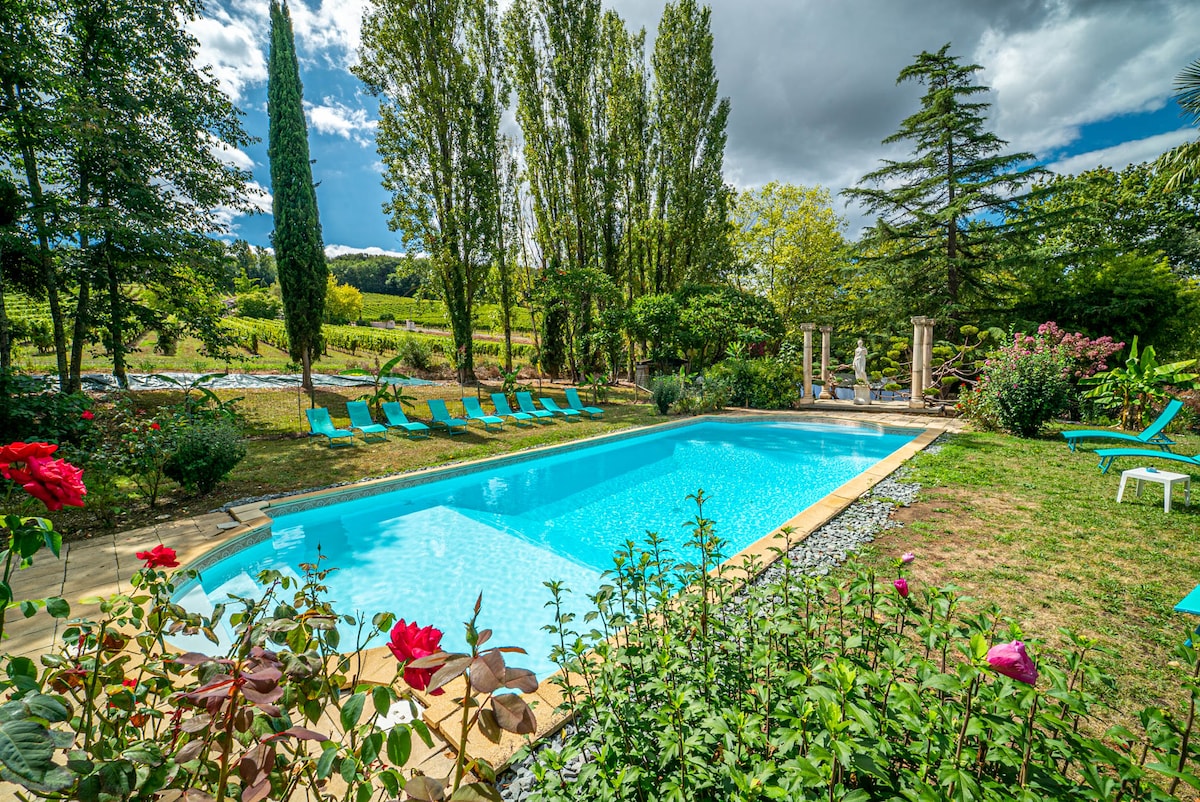 Rahat, yeni yaşayış yerimizdə, müstəqil girişi olan, bərpa edilmiş 1860 daş mülkdə, bir hektarlıq meşəlik park, onun üzgüçülük hovuzu ilə əhatə olunmuş, ətraf kəndlərin gözəl mənzərəsi və mövsümi rəngləri olan qəribəlik və rahatlıq. Sahibini bağlayın. Pulsuz parkinq. Piyada gəzinti yolları, işarələnmiş dağ velosipedi, 200 metr məsafədə . Yaxınlıqdakı çoxsaylı üzüm bağı qəsrləri, Berqerak və onun bazarı, 12 km məsafədə, yaşıl yol 15 km, A89 (10 km) məsafədə başlayır. Danışılan ingilis dilində danışılır