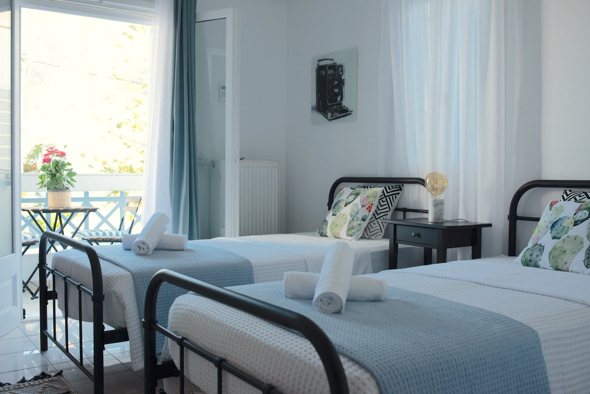 Studiya kiçik soyuducu konveksiya peçi, kondisioner, Wi-Fi, qarderobda xüsusi vanna otağı və yay yeməklərinizi hazırlamaq üçün çanaq və mərmər üstü olan mətbəxdən ibarətdir və nar ağacları püstə ağacları və zeytun ağacları ətrafında bağdan zövq alır. Perissanın məşhur qara qumlu çimərliyindən 2 dəqiqəlik məsafədəyik