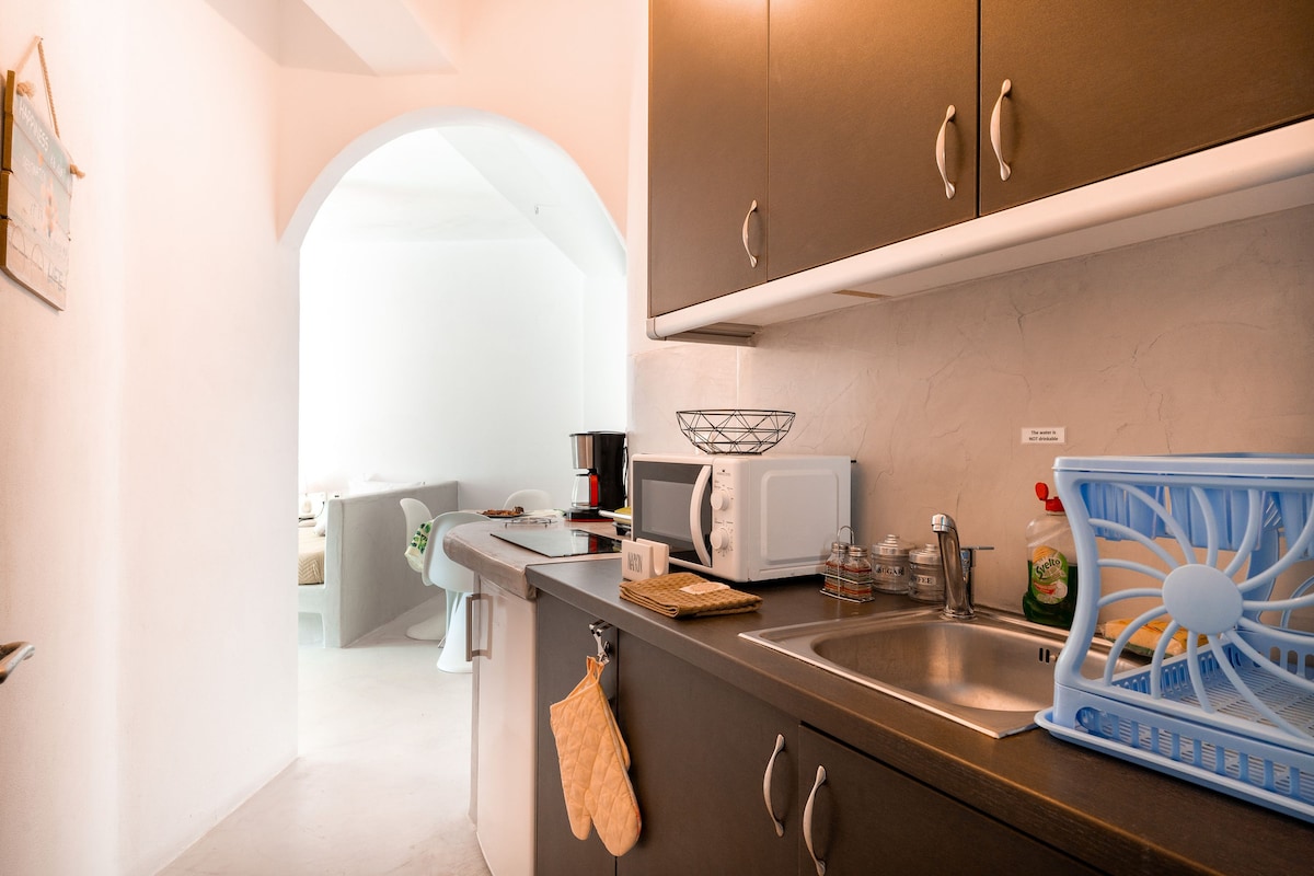 Santorini kəndində yaxşıca gizlədilmiş sakit kanyonda köhnə üslub tam və yenicə təmir edilmiş ənənəvi mağara. Mağarada yaşamaq, kənd təsərrüfatı həyatına rəhbərlik etmək, təbiətin səslərini eşitmək, çimərlikdən 10 dəq uzaqda olmaq təcrübəsi!
