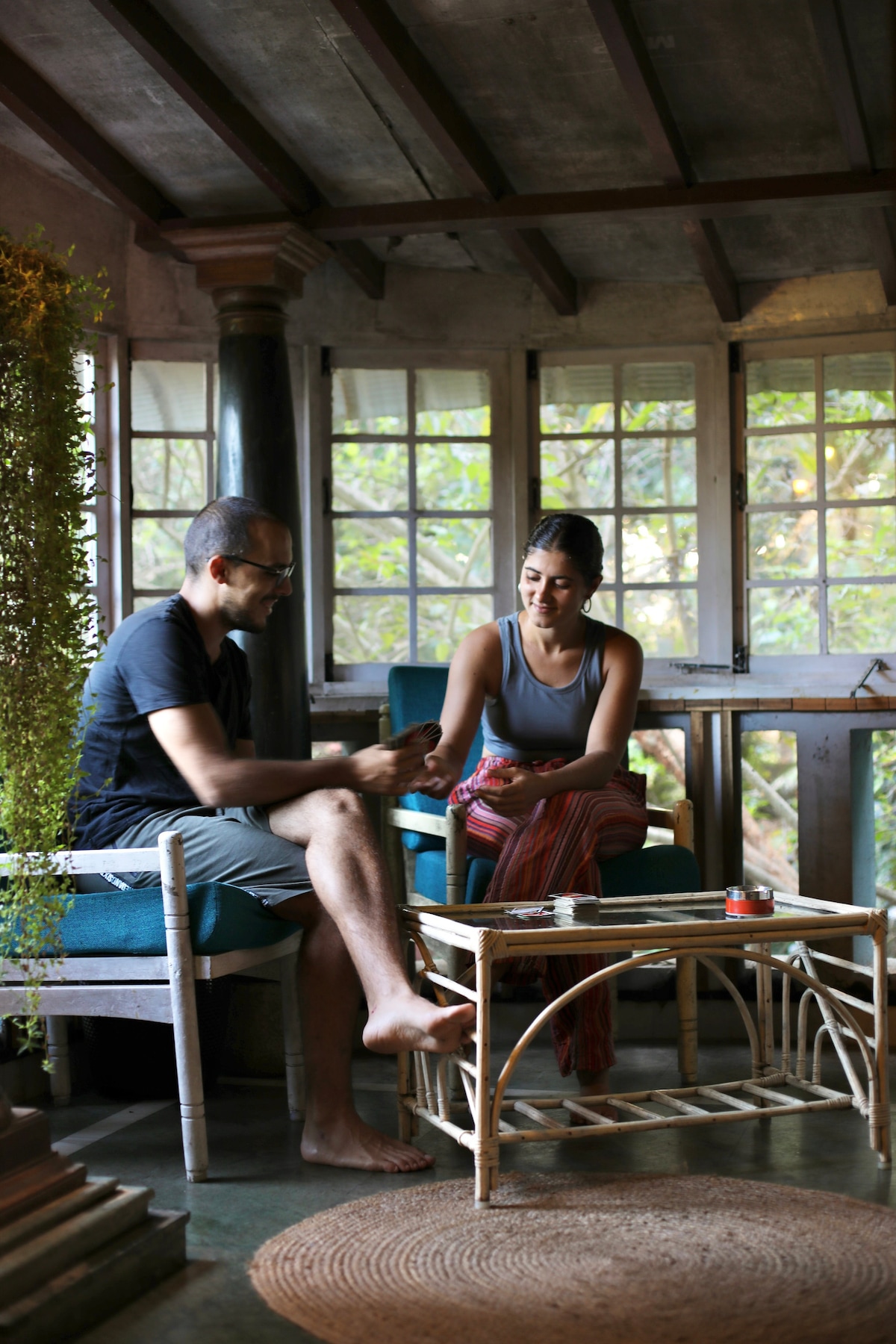 Your home away from home in Auroville has been tastefully decorated to a Chettinad theme. Every corner of our home is Instagramworthy with colourful interiors, kolam art, antique decor and more. The 1BHK can comfortably accommodate up to 4 persons with a swing bed and sofa bed in the living room. hile there are plenty of restaurants nearby, our kitchen has been thoughtfully equipped for all your needs - be it to make a quick omelette or a full Indian meal. So sit back, relax and sip your coffee.