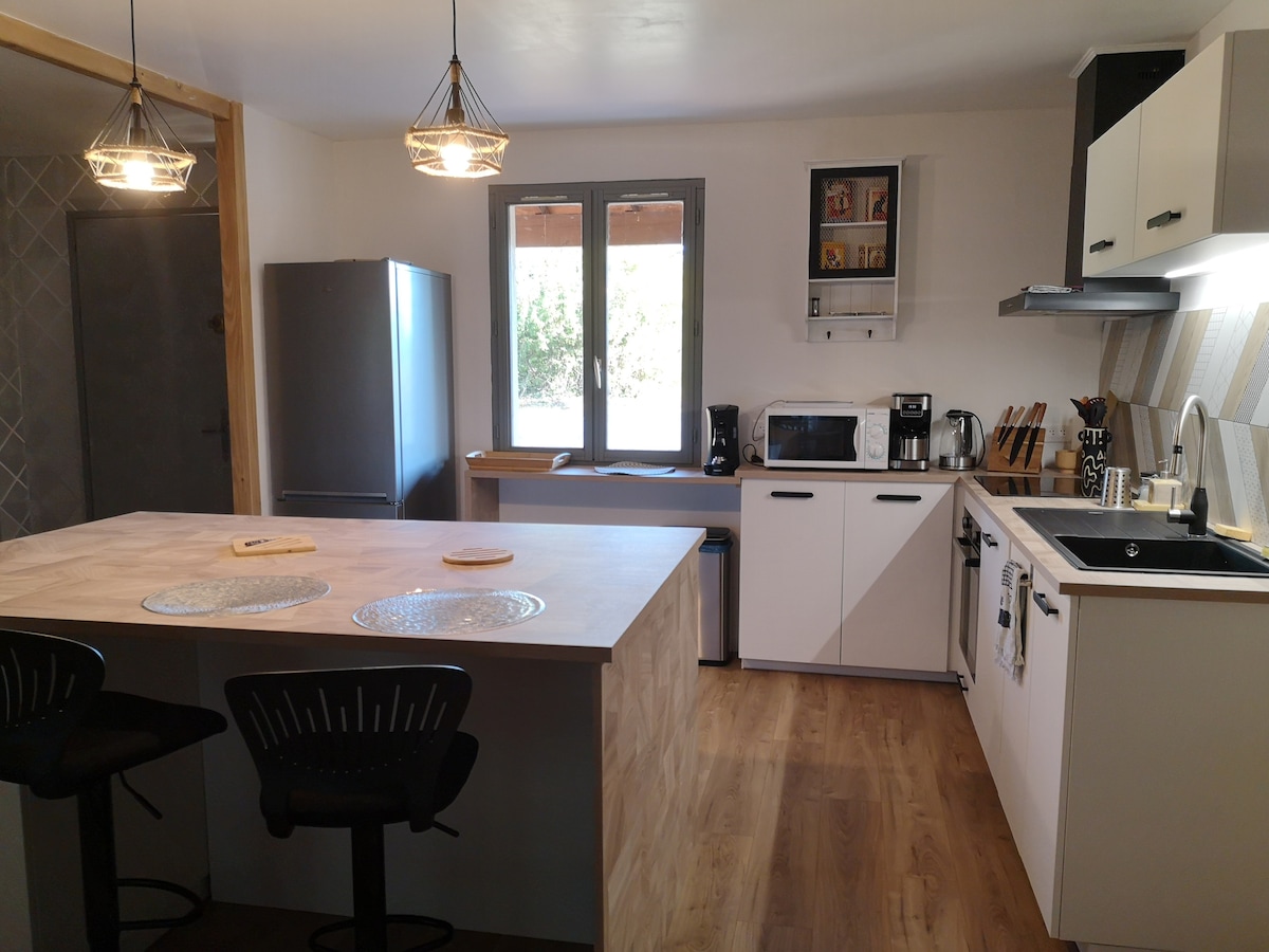 Classé meublé de tourisme pouvant acceuillir jusqu'à 6 personnes, dans un hameau à 4 kms du village de Lalbenque Cuisine ouverte toute équipée avec espace repas Salon spacieux avec poêle à bois et coin lecture Trois chambres (2 avec un lit double et une avec 2 lits simples) Equipement bébé à disposition (lit parapluie, chaise , baignoire.) Salle de douche WC indépendant Piscine 9x4,5 (juin à fin septembre) Terrasse couverte avec une table et ses chaises Barbecue (charbon de bois non fourni)