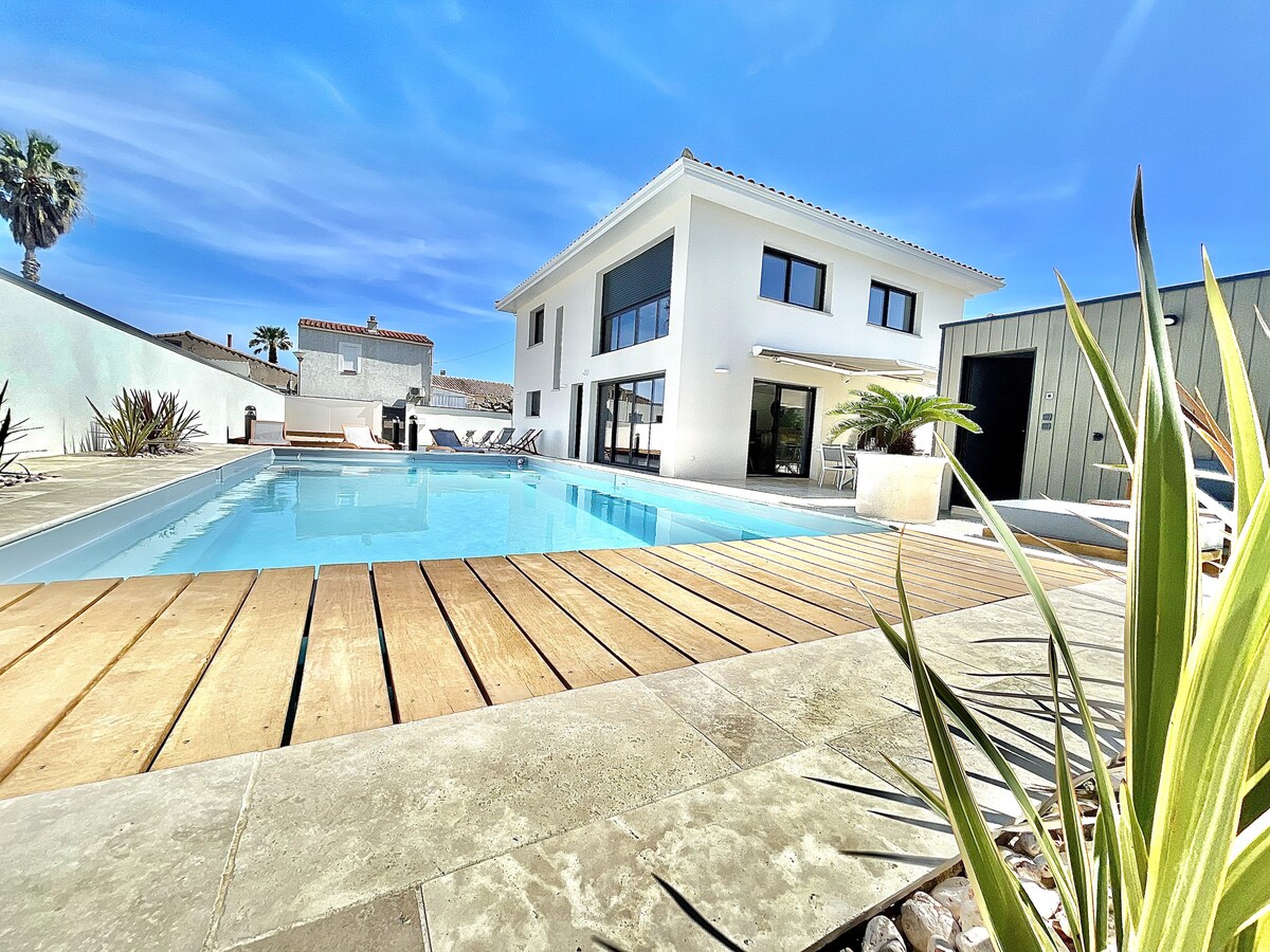 Unudulmaz tətil üçün dənizin düz yanında lüks və rahat bir yer olan lüks villamıza xoş gəlmisiniz! Çatdığınız andan etibarən müstəsna açıq hava məkanımız sizi valeh edəcək. Son istirahət anları üçün bir neçə günəş yatağı və günəş vannaları ilə əhatə olunmuş böyük isidilmiş hovuzumuzla dincəldiyinizi təsəvvür edin. Oyun sevərlər üçün vəhşi şənliklər üçün pétanque meydançası da mövcuddur.