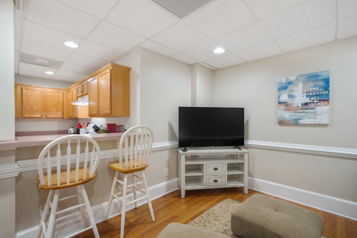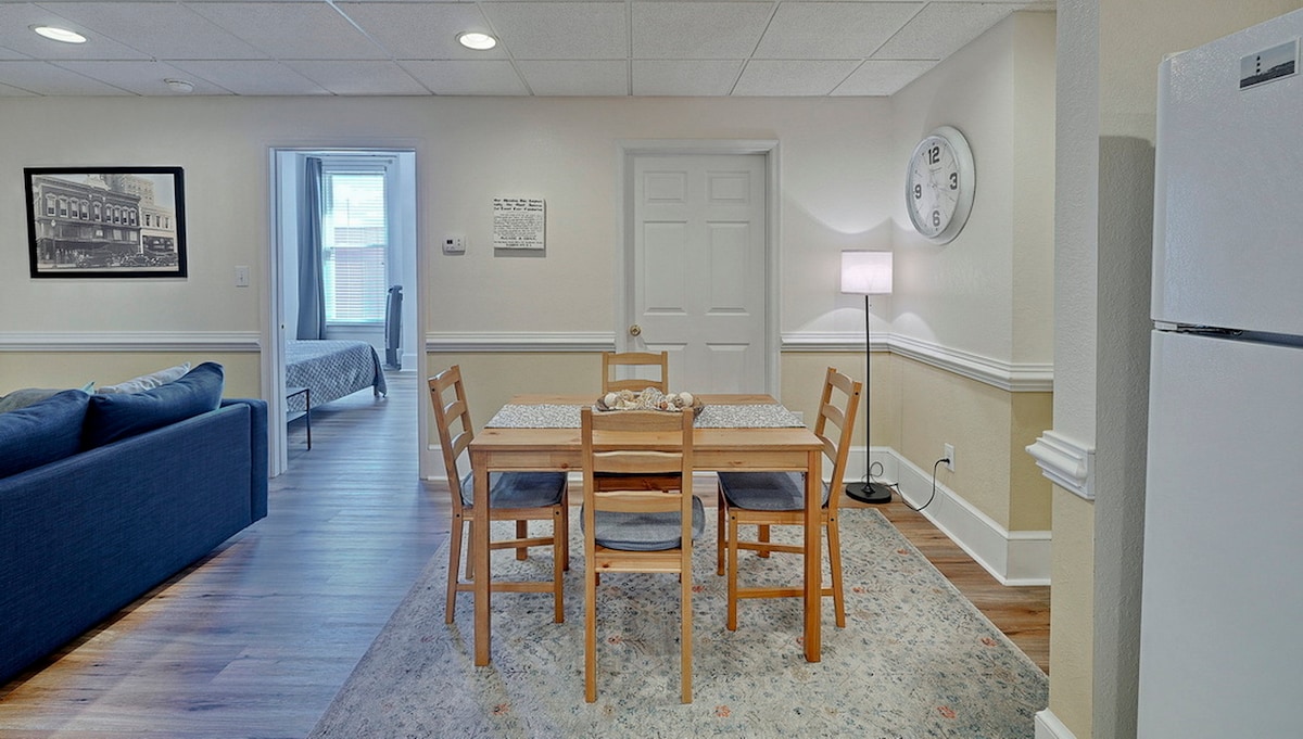 Main St. -də yerləşən tarixi rayonda yerləşən 2BR mənzilimizdə qonaqlayın. Gözəl sahilyanı, şəhər mərkəzindəki restoran, əyləncə və pivə zavodlarımızdan bir blok məsafədə olacaqsınız. Girişdən birbaşa küçədə öz parkinq yeriniz olacaq. İdman zalının aşağısına 24 saat giriş imkanından da istifadə edə bilərsiniz. Həftədə 15-dən çox dərs təklif olunur ki, sizə də pulsuz qoşula bilərsiniz. Hətta gözəl şəhərimizi kəşf etmək üçün istifadə edə biləcəyiniz 2 çimərlik kreyserimiz də var.