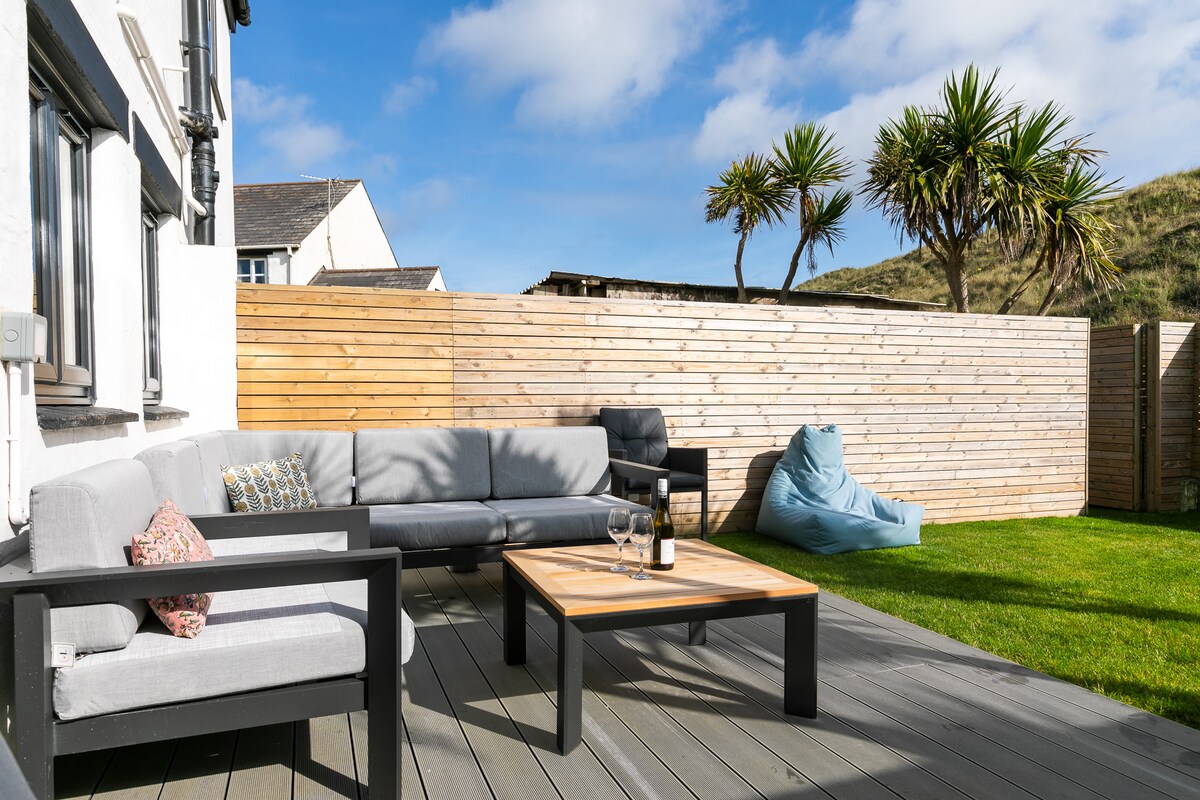 156 ən yüksək reytinqli rəyə sahib Super Ev Sahibi. No 11 The Dunes dəniz və qum təpələri mənzərəsi olan, 2 yataq və 2 hamam otağı olan fantastik birinci mərtəbə müasir mənzildir və ailələr, cütlüklər və itlər üçün mükəmməl çimərlik tətilidir. Həm çimərlik, həm də şəhər qapınızın önündədir. * Qarşılama paketi Salonda * 55" tv Hər iki yataq otağında * 28" tv * Yeraltı istilik sistemi * Bosch avadanlıqları * Pulsuz Wi-Fi - 150 mb * Nepresso qəhvə maşını * Kotec və uşaq üçün yemək stulu * Bir avtomobil üçün parkinq * Bodi-bordlar və vintbreykərlərlə sörfinq mağazası