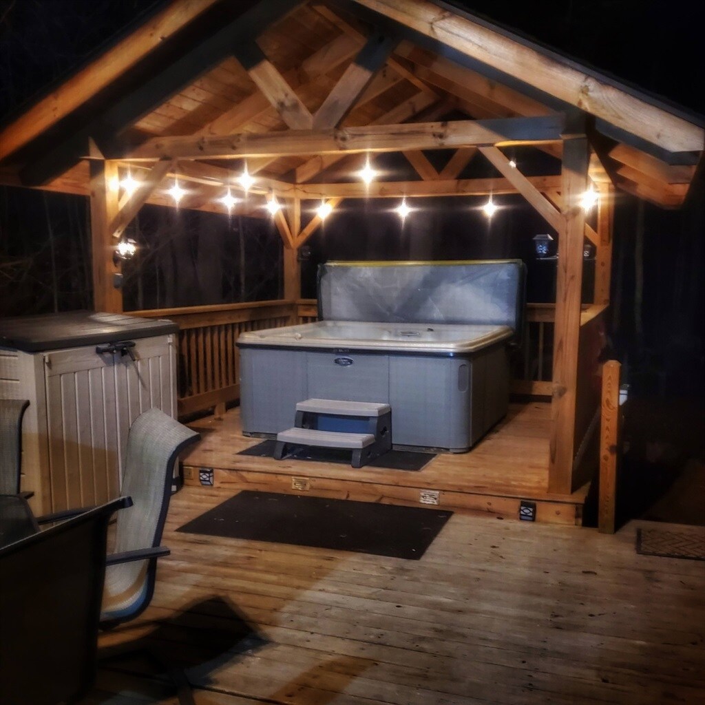 Reconnect with nature at this unforgettable escape. Enjoy the seclusion and wonderful outdoor space this property has to offer. Over 700+sq foot of outdoor living including two decks, hot tub, fire pit, covered patio and outdoor shower. Your bound to encounter the many wildlife as your surrounded by over 100acres of woods. Onsite property shares playground. Walk through the surrounding woods on the property trails. Relax and unwind at this Picturesque Cottage.