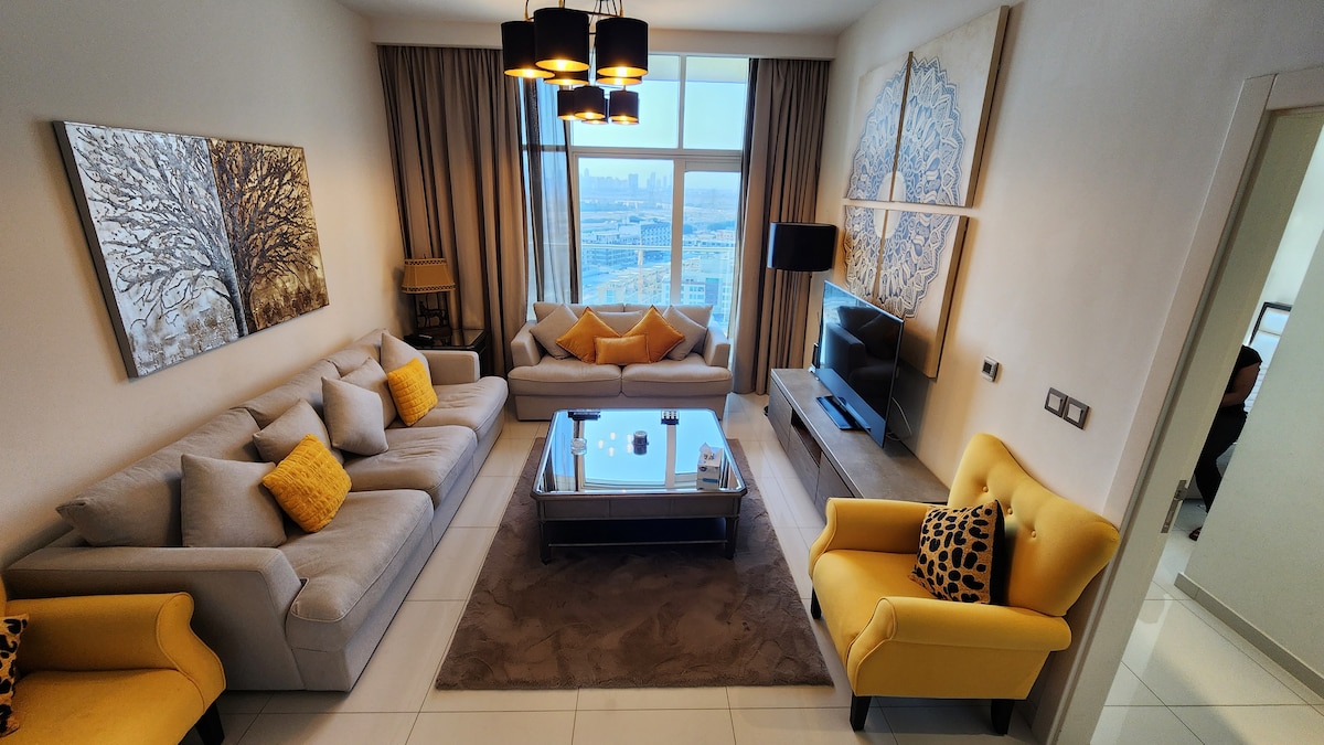Designed for relaxed city living, this bright and modern 1-bedroom apartment is set in Jumeirah Village Circle, Dubai. Ideal for individuals, couples, or small families, it features an inviting living area, a functional kitchen, in-home entertainment, and access to premium building amenities. It suits both business and leisure stays, while staying close to local dining, cafés, and everyday essentials while enjoying a calm, comfortable space to return to at the end of the day.