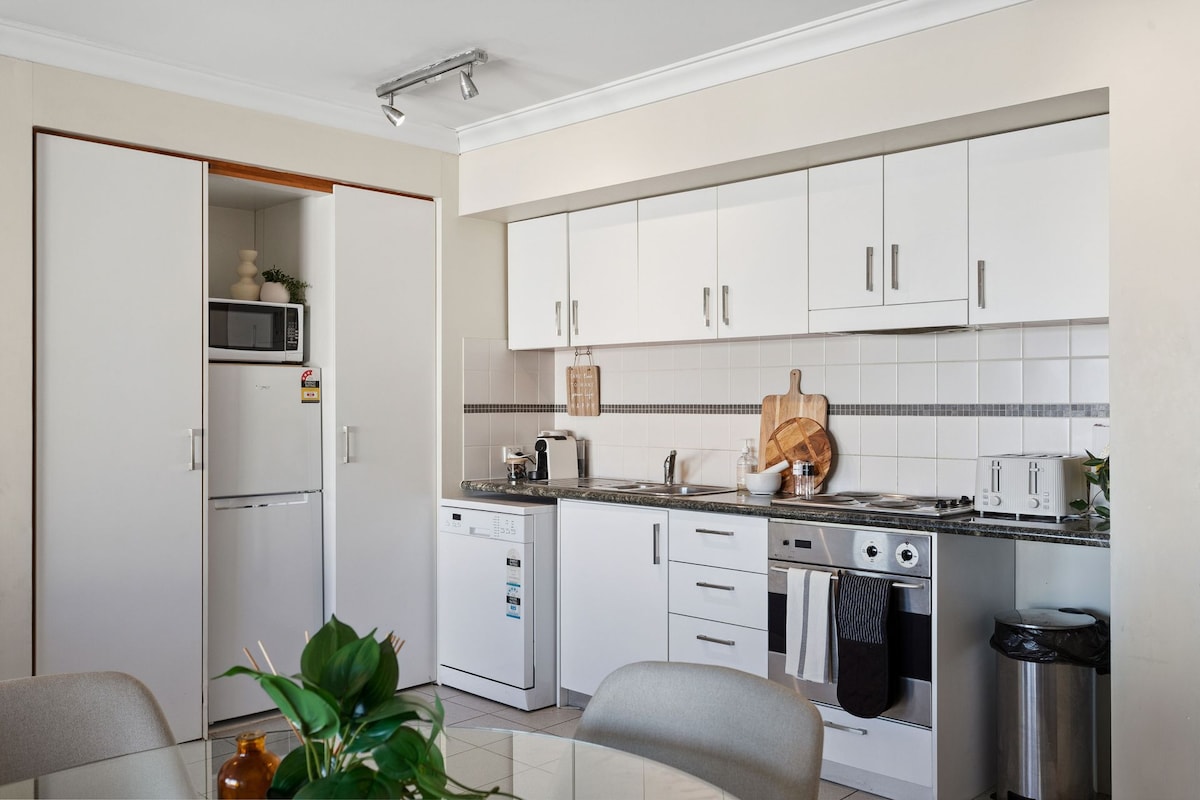 Minimalist dizayn elementləri olan parlaq müasir mətbəxdə qəhvə dəmləyərkən duzlu təmiz havada oyanın. Günəşli şimal tərəfdəki balkona çıxın və nəfəskəsici okean mənzərələrinə heyran olmaq üçün açıq havadakı divana başlayın. Təravətləndirici üzmək üçün Kottesloe çimərliyinin ağ qumlarına doğru gedin və daha sonra bu dəbli üst mərtəbə mərkəzi Kottesloe mənzilinin qısa gəzintisində çimərliyə yaxın kafelərdən, canlı pablardan, dəbli çimərlik barlarından və füsunkar restoranlardan zövq alın.